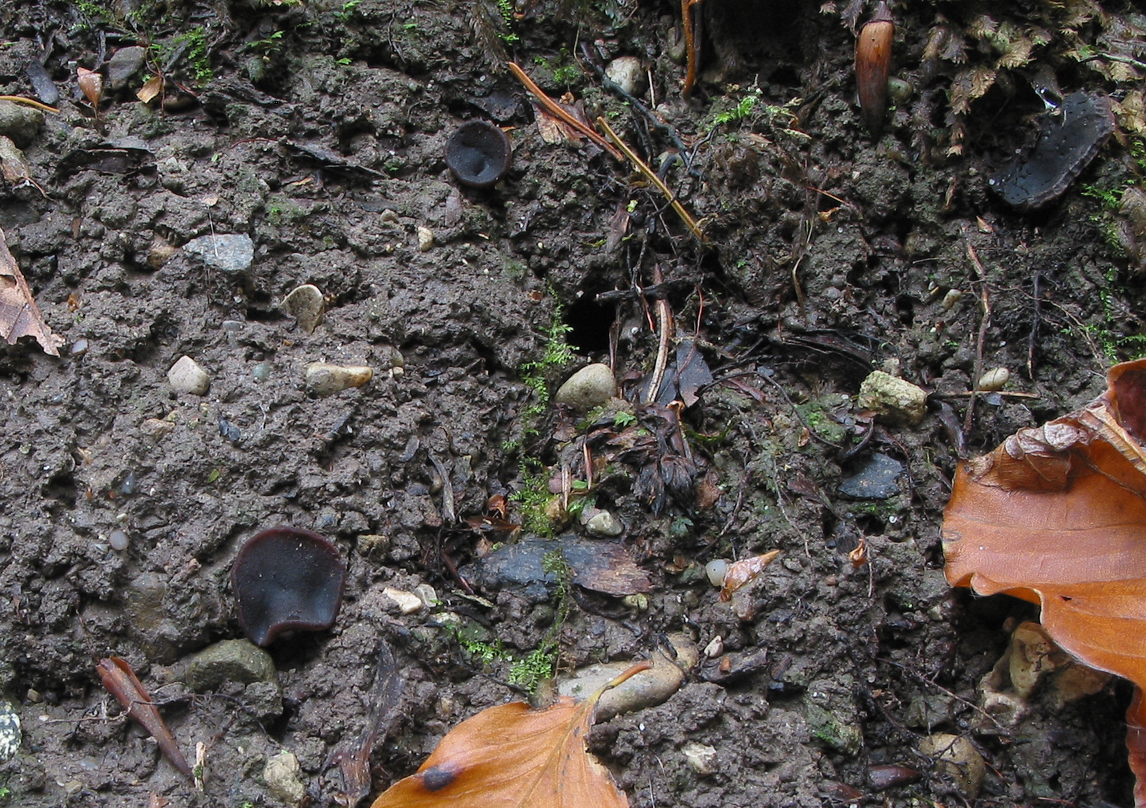 Weiter ging es durch einen ausgetrockneten Bachlauf, an dessen kahlen Rändern einige Ascomyceten fruktifizierten.