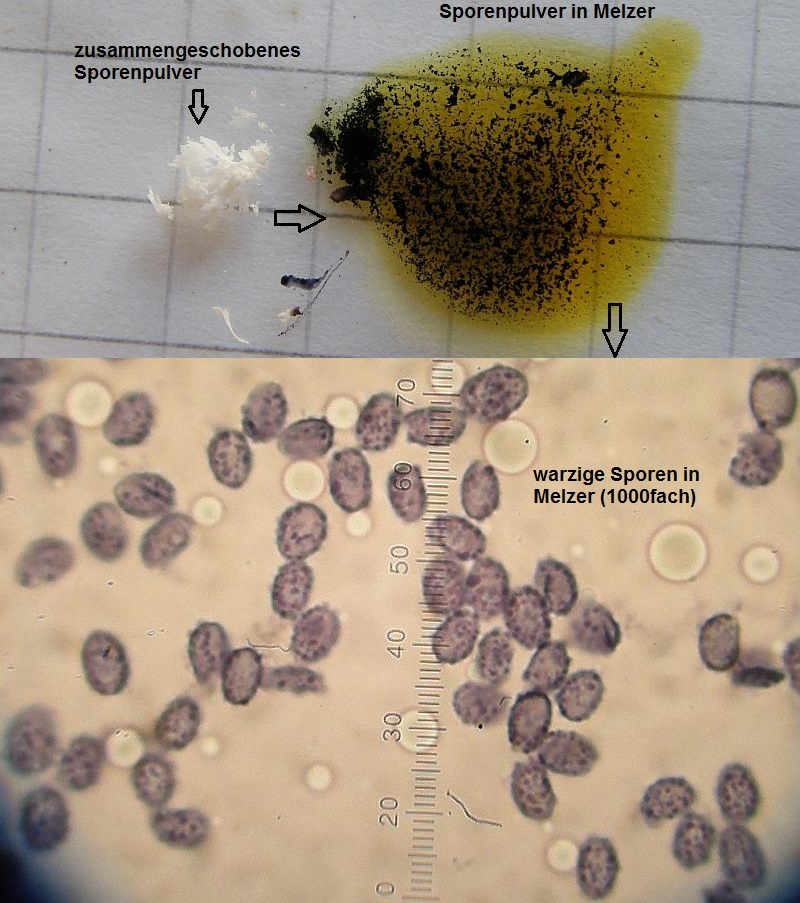 Auch das ist makroskopisch nachvollziehbar (wobei ich jetzt aber kein Bild habe, fürchte ich). Kann man aber auch einfach mal prüfen, Leucoagaricus zB hat stark dextrinoide Sporen.