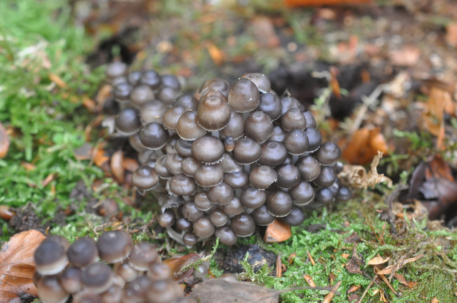 Mycena - Helmling zusammen mit Schwefelkopfe