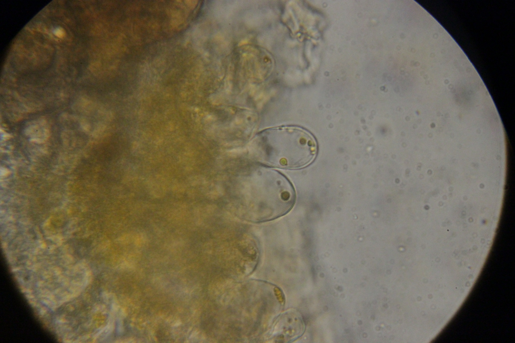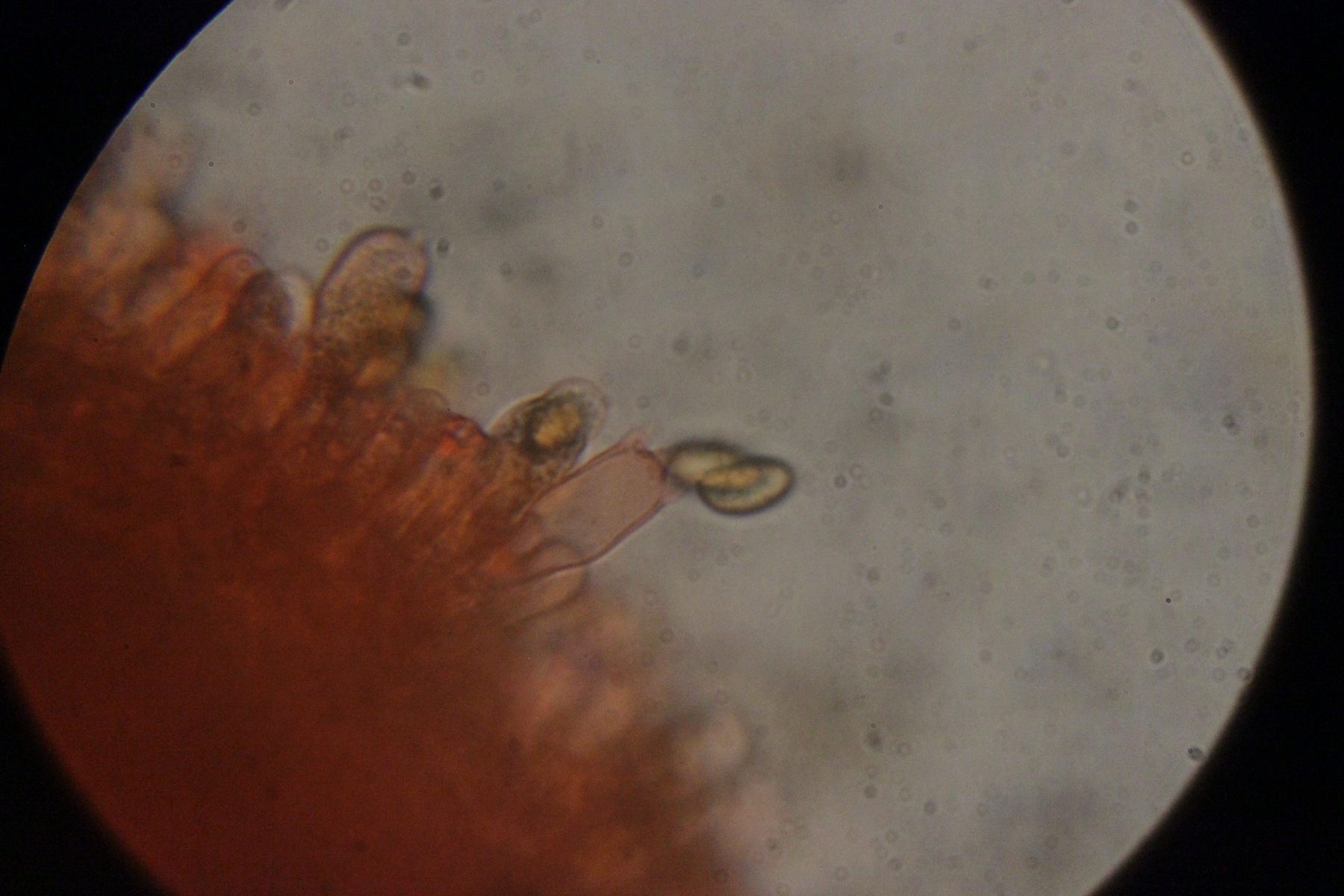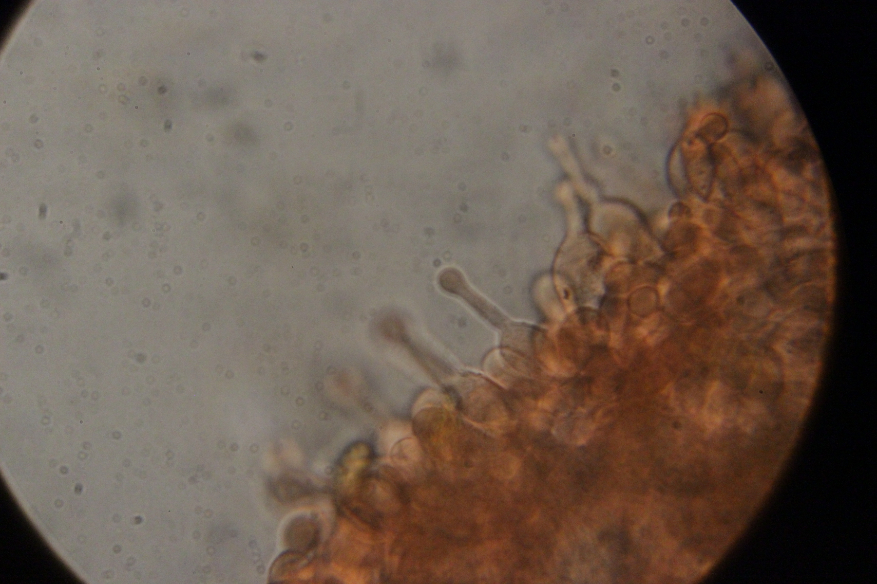 3. Galerinchen! Da habe ich natürlich direkt ein paar eingepackt und meinen Bottroper Namensvetter gefragt, ob die was für ihn sind. Ein findiger Blick auf die Lamellen ergab zu 95% Galerina clavata und den Rat, nach Schnallen zu suchen. Die habe ich dann (wie erwartet) nicht gefunden, so daß der Fund wohl wirklich als Galerina clavata abzulegen ist.