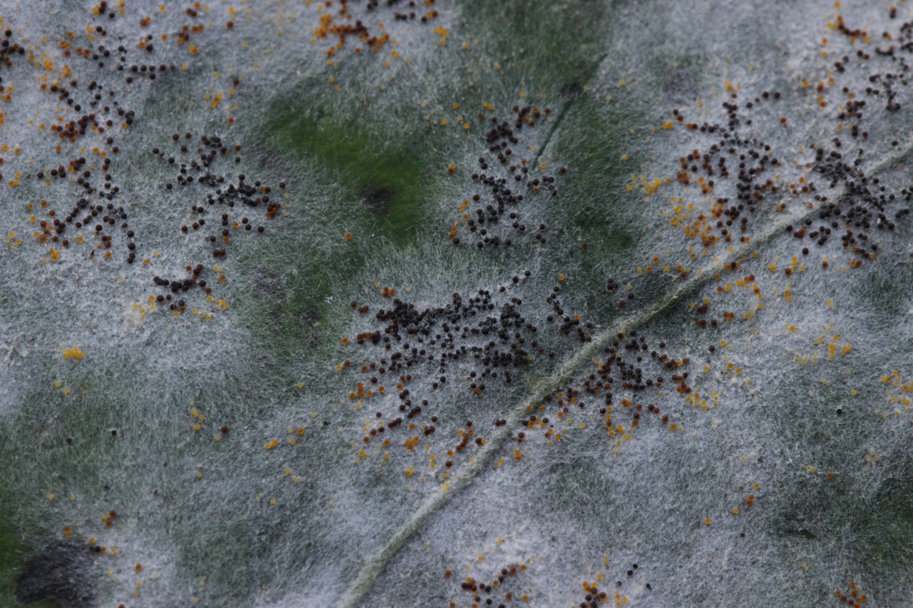 8. Erysiphe urticae auf Urtica dioica, da Fruchtkörper mit der Lupe auffindbar