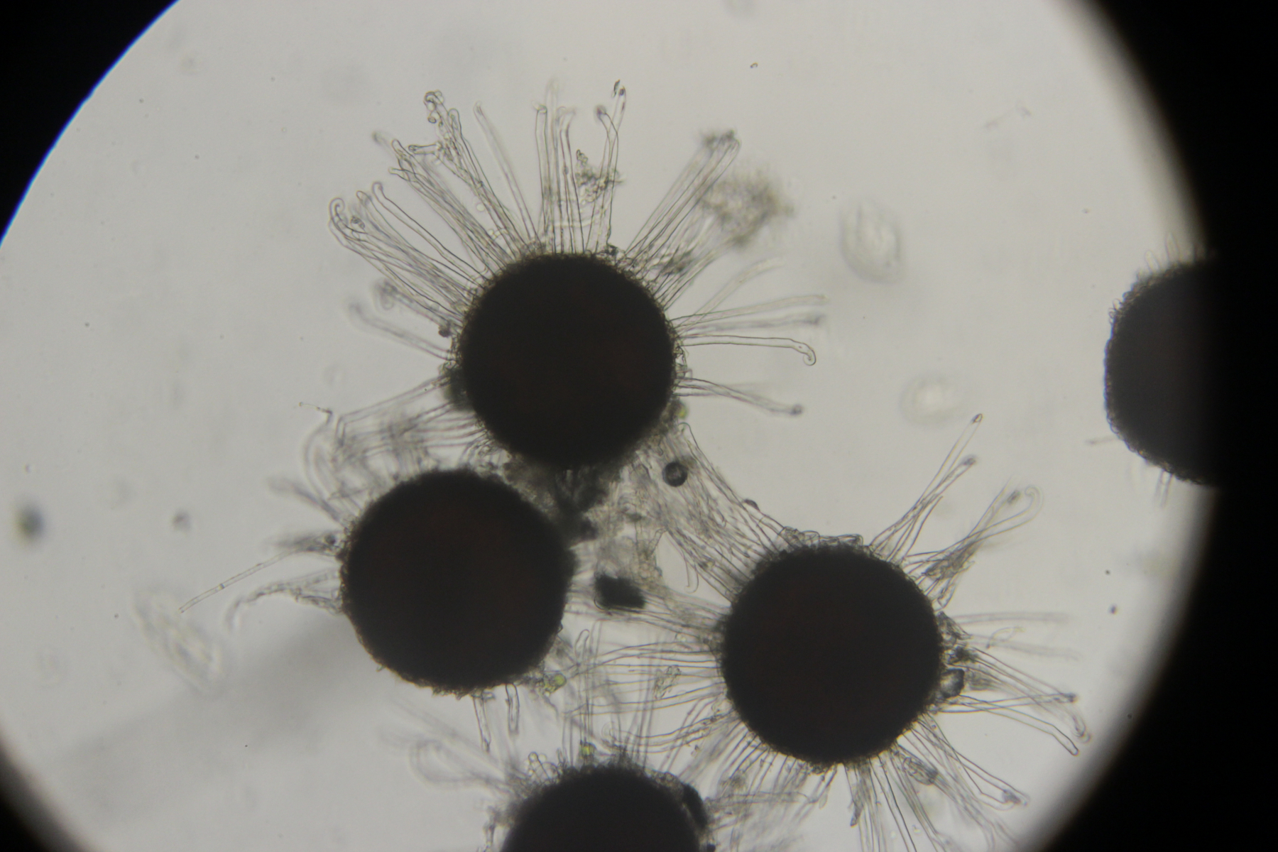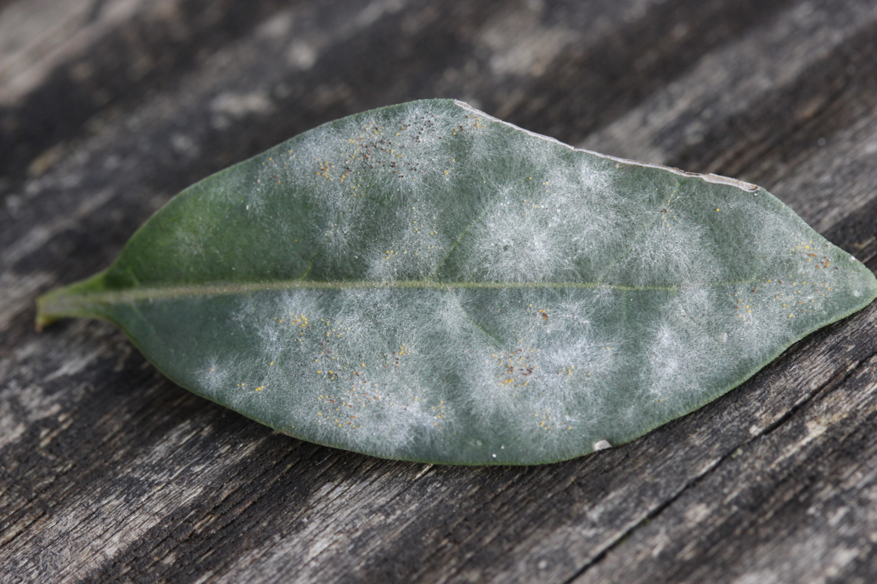 10. Mehltau auf Ligustrum sp. Ob das nun Erysiphe syringae oder Erysiphe syringae-japonicae ist, vermag ich nicht so recht zu sagen, dafür hatte ich dann letztenendes auch nicht genug reife Fruchtkörper zur Verfügung. Aber die wenigen Fruchtkörper und deren späte Reife spricht dann eher für E. syringae.