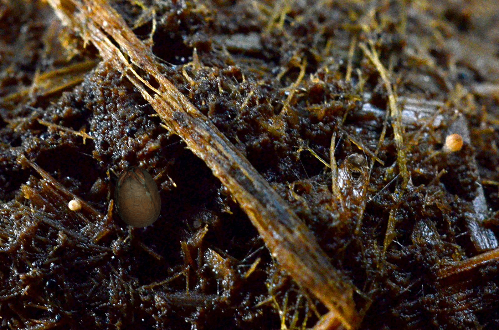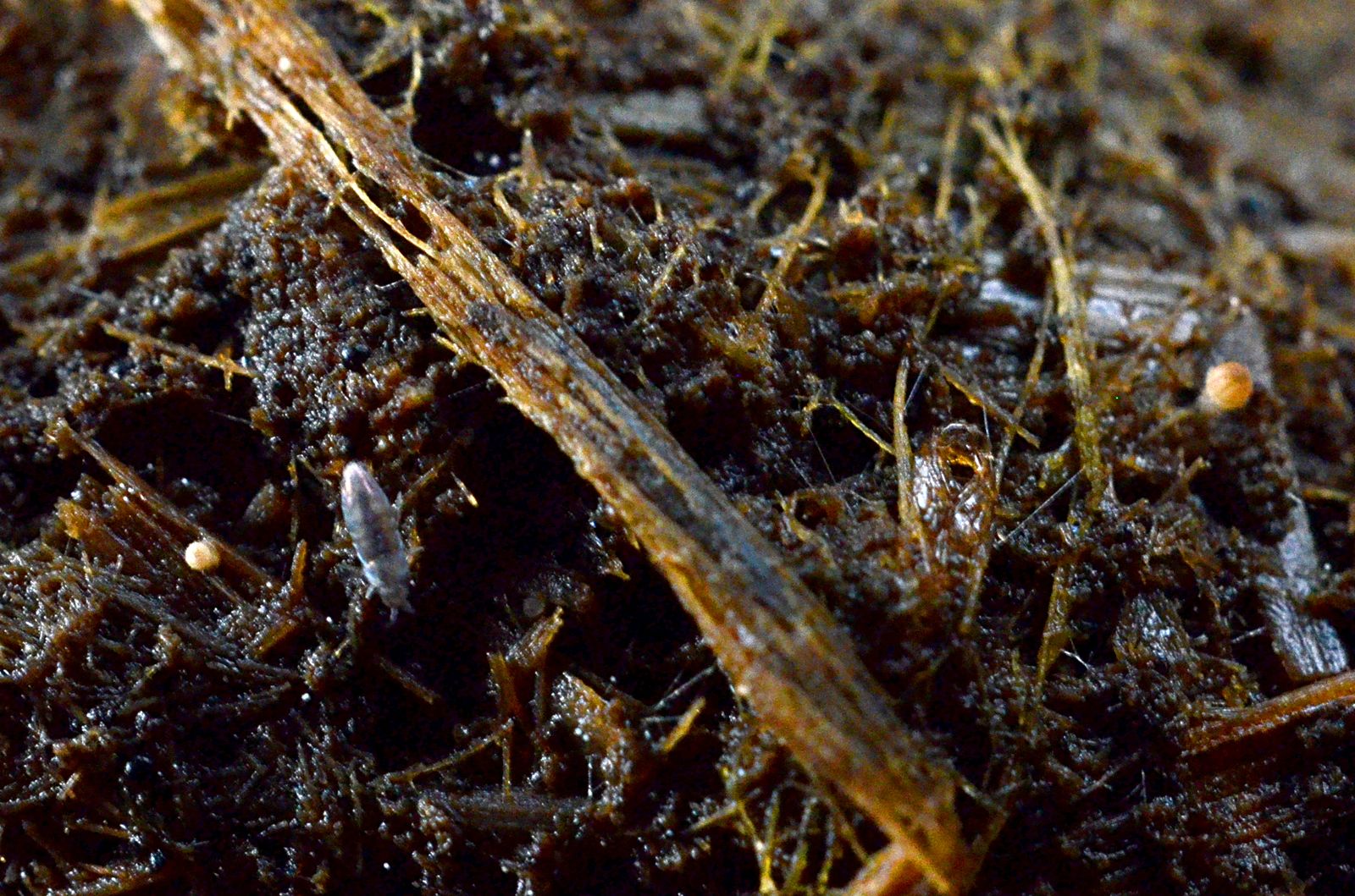 zu sehen sind zwei Tintlingsknirpse, ein Springschwanz und eine Fliegen-Puppen-Hülle...
