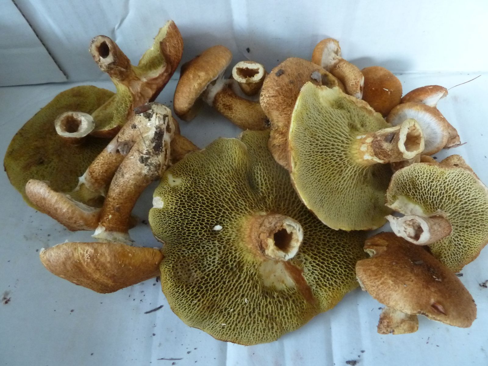 Hohlfußröhrlinge werden anscheinend selten von Würmern und Maden befallen. Nur bei den beiden ganz großen Exemplaren ist etwas Fleischbeilage augenscheinlich von den Röhren in das Hutfleisch gekrochen, die habe ich aussortiert.
