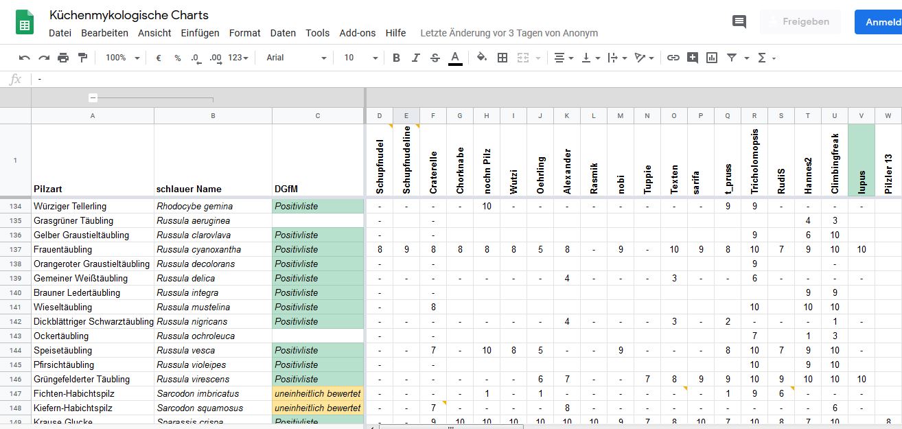 streiten will ich dieses Themas wegen überhaupt nicht. Und bestimmen welche Pilze in der Liste stehen kann ich eh nicht.