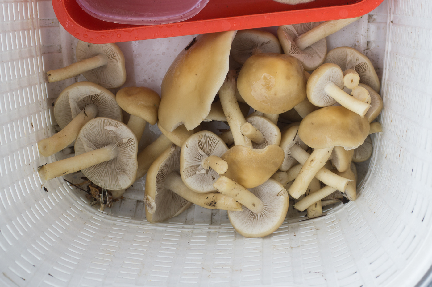 Wir werden nachher den parasitischen Röhrling verkosten. Pareys bezeichnet ihn als kaum genießbar, in der Liste hat er aktuell einen Durchschnitt von 9,0. Ich bin sehr gespannt!