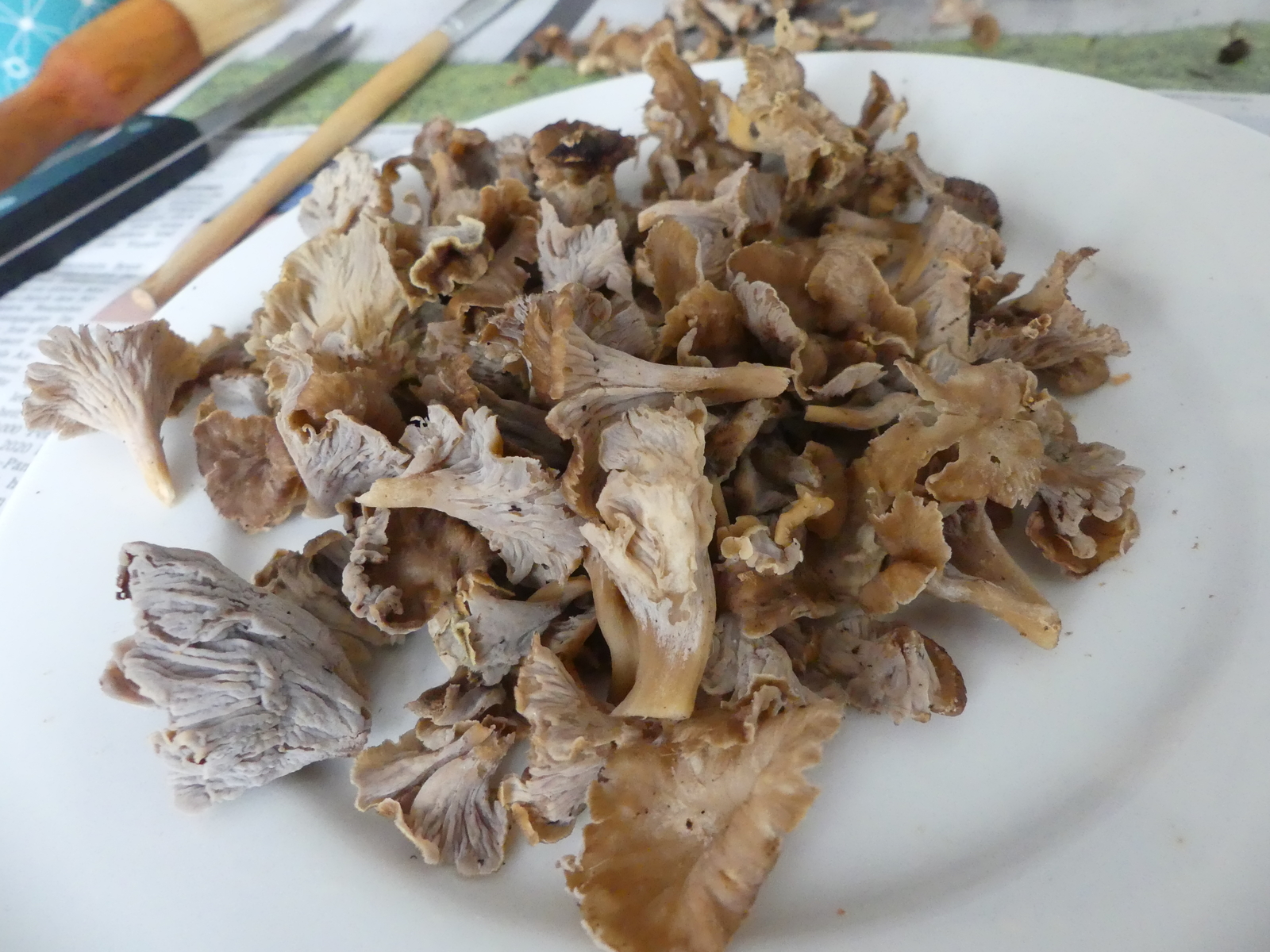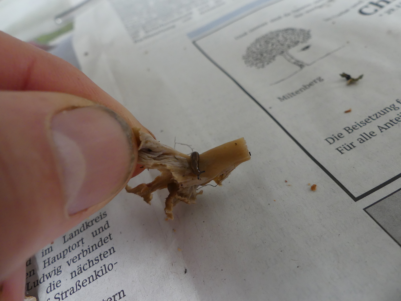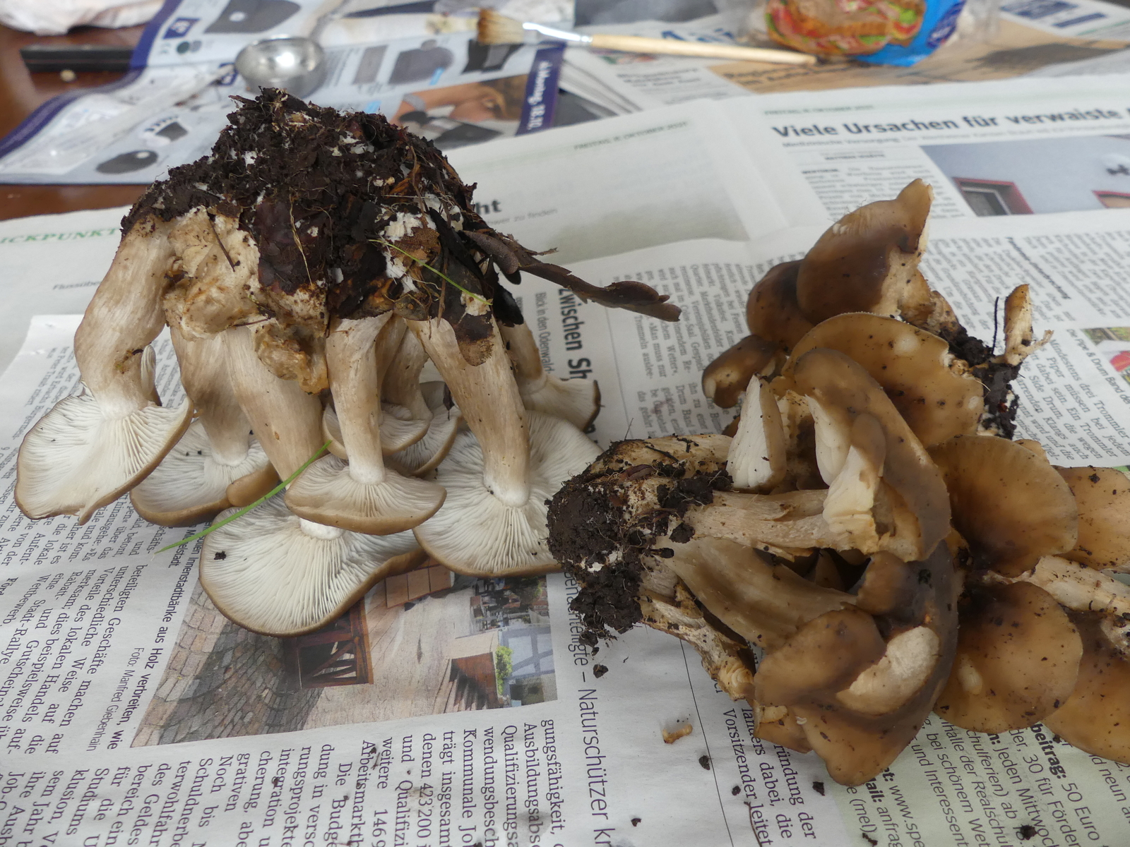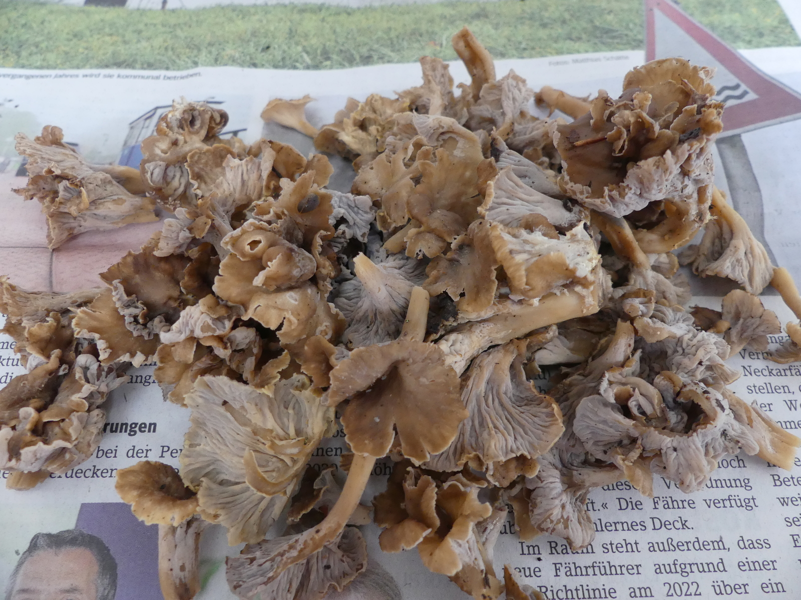 Zweiter Kandidat war ein weißer Schneckling. Im Wald hatte ich noch auf Elfenbeinschnecklinge gehofft, aber beim Erhitzen war der Geruch dann doch eher Richtung Essig als Zitrusfrüchte. Fertig zubereitet war das weitestgehend verflogen, und er schmeckt auch nicht säuerlich. Aufgrund der ungewöhnlichen Zubereitung (gesüßt statt gesalzen) traue ich mir dazu aber noch keine Bewertung zu.