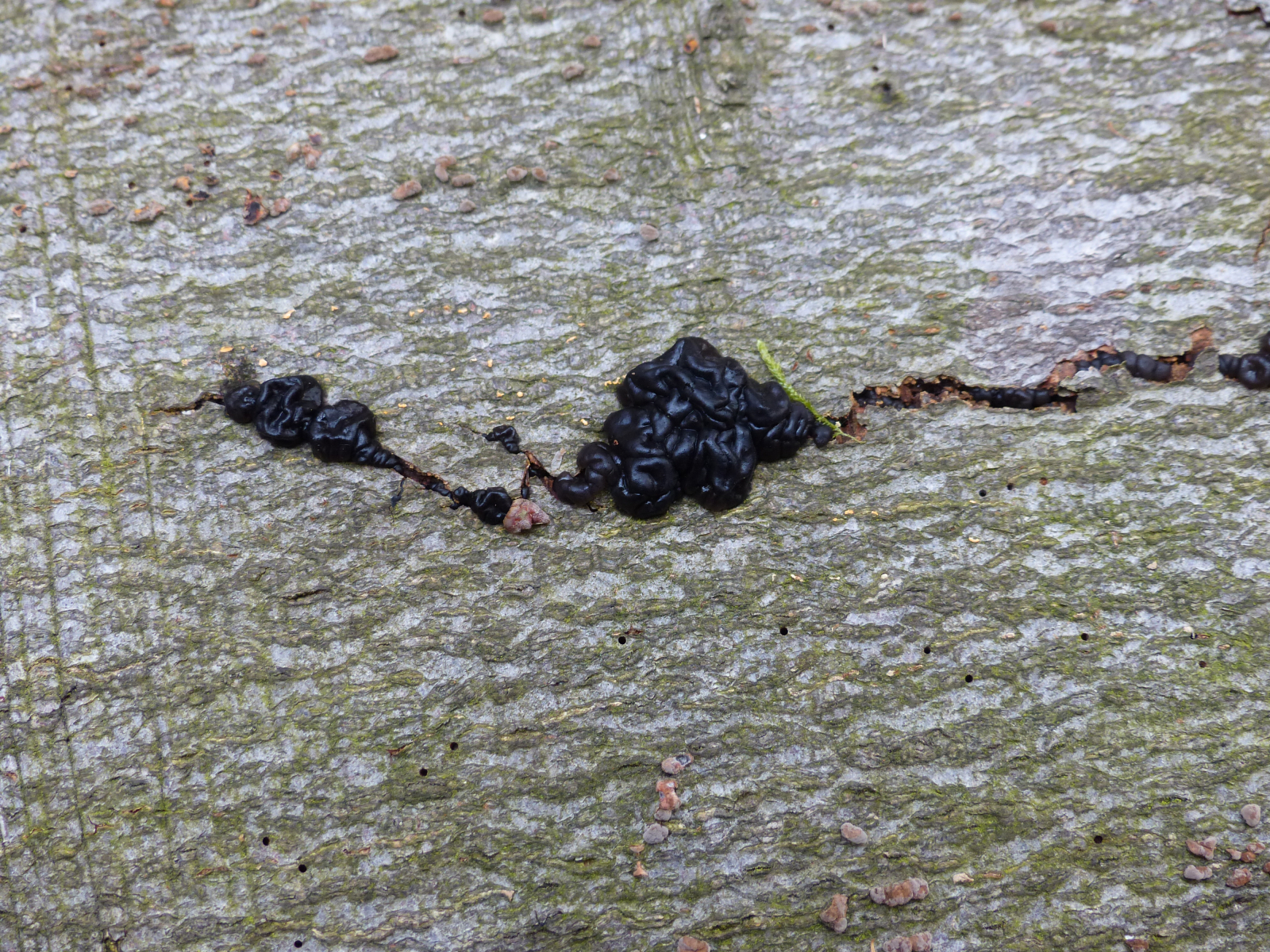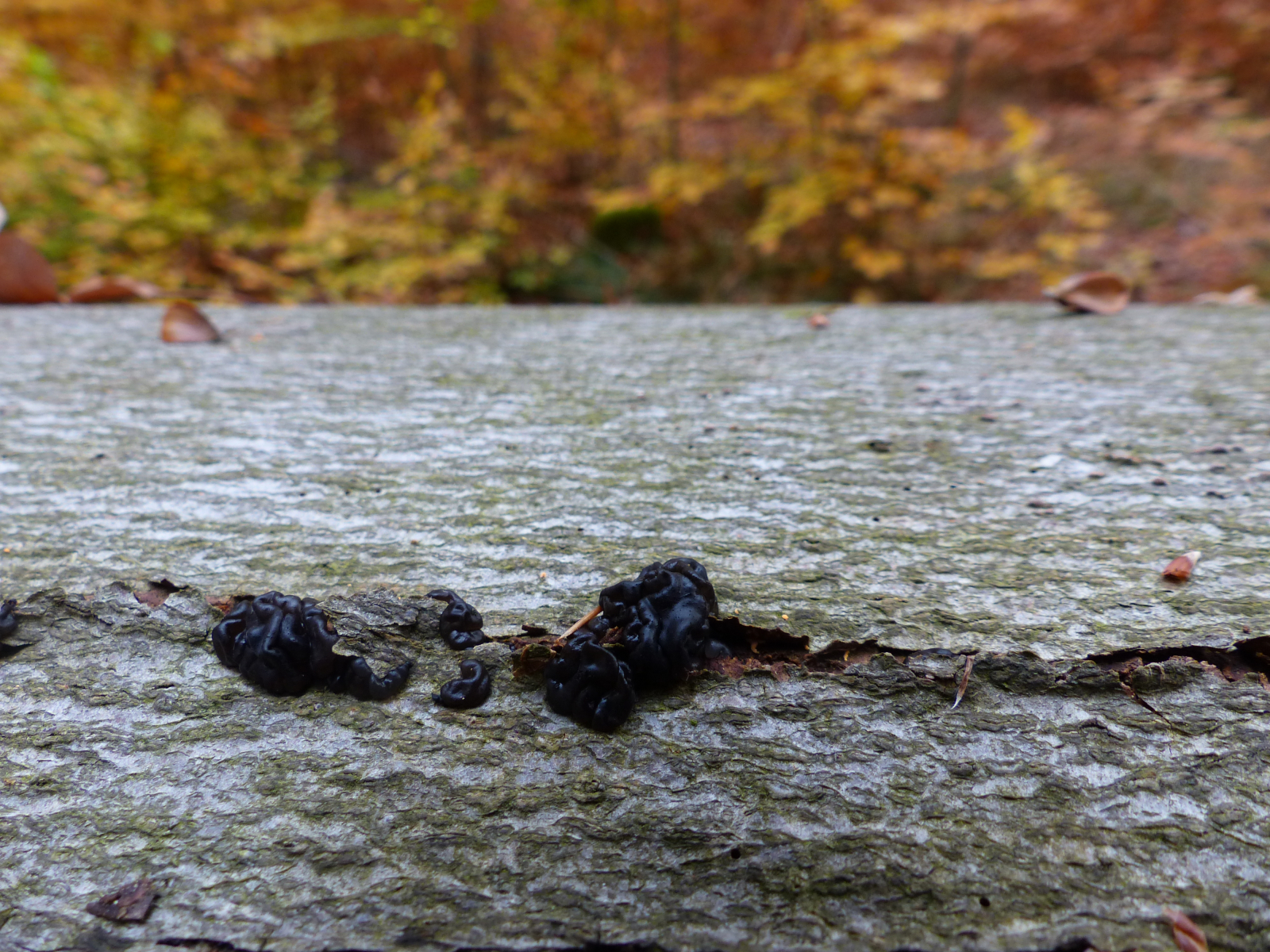 Gerade wollte ich mich auf einem Baumstamm niedersetzen, wie hochtrabend sich das liest, da sah ich gerade noch rechtzeitig, dass ein Haufen auf dem Baumstamm lag. Erst dachte ich, es sei Vogelkaka, aber dann .............nun ja. Könnte das der Schmutzbecherling werden?