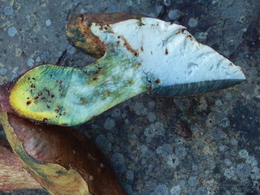Fleisch: weiß im Hut, gelb an der Stielbasis, stellenweise bläuend im Schnitt