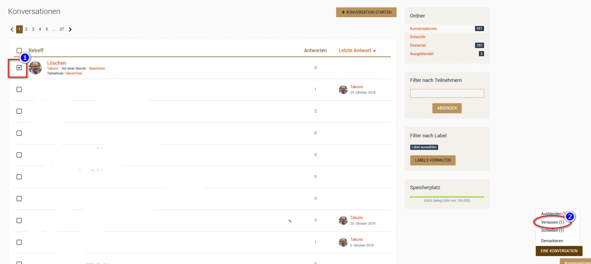 Danach die auswählen die weg sollen und dann erscheint rechts unten der Button Konversationen