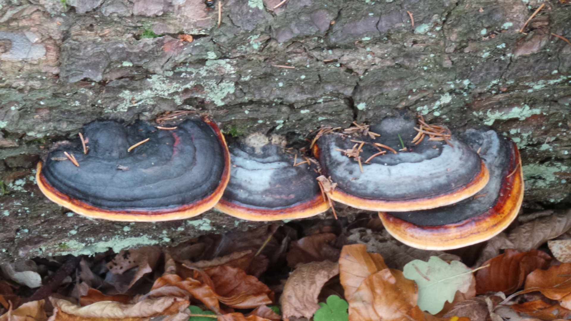 Dabei bin ich an ein paar Fichtenporlingen vorbeigekommen, die sind ja nichts Außergewöhnliches, aber immer wieder schön. Sie wuchsen an einer seit mehreren Jahren liegenden Fichte.