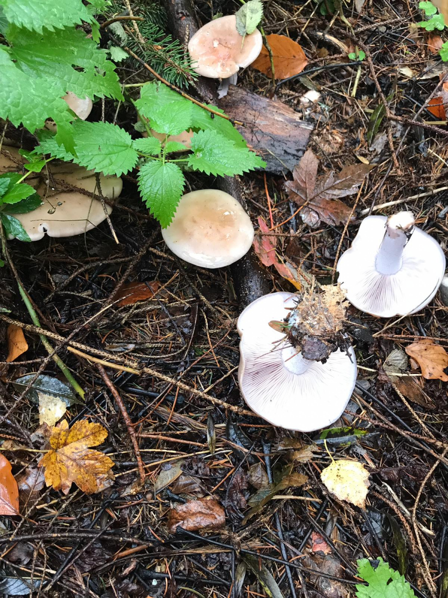 Und wenn die (zumindest nach kräftigem Rubbeln der Stieloberfläche) nach Lepista nuda (Violetter Rötelritterling) riechen, dann ist es Lepista nuda. Wenn nicht, wird's irgendwie komplizierter, dann kämen noch Arten wie zB der Blassblaue (Lepista glaucocana) in die Auswahl.