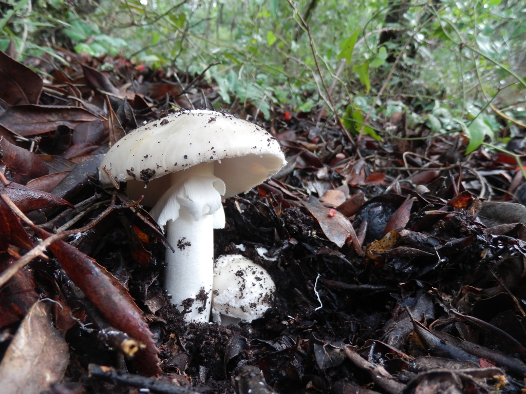 Hut: ca. 10 cm, grau-schimmernde Oberfläche mit grau-weißlichen Velumsresten