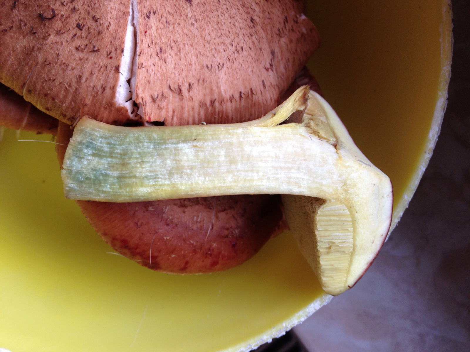 Ich beginne mal mit dem Filzröhrling. Auffällig der rötliche Farbton unter dem Hutfilz.Und er läuft nur ganz leicht und auch erst nach einer Stunde an. Ist das eine Ziegenlippe, so habe ich die noch nicht gesehen?