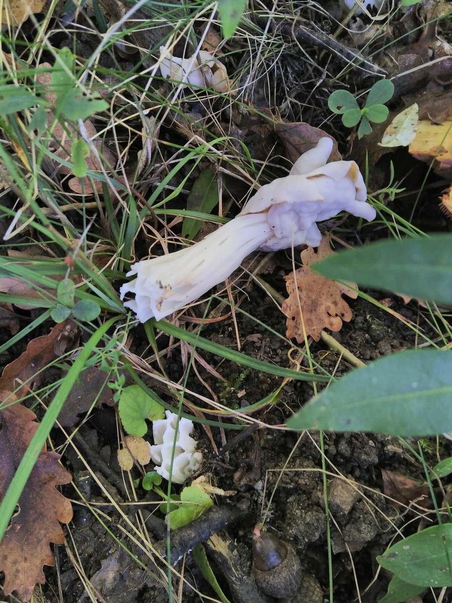 Es müsste sich um eine Herbstlorchel handeln, weil der Hut nicht angewachsen ist, aber ich habe so einen Pilz noch nie gesehen. Besonders beeindruckend finde ich den filigranen Stiel !