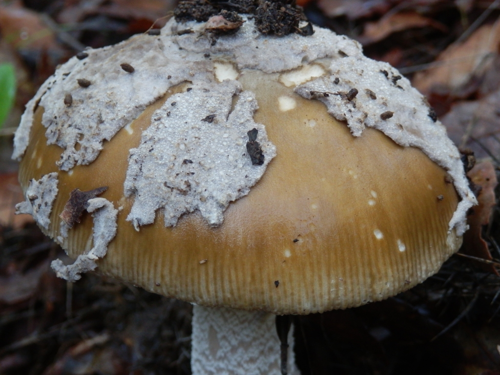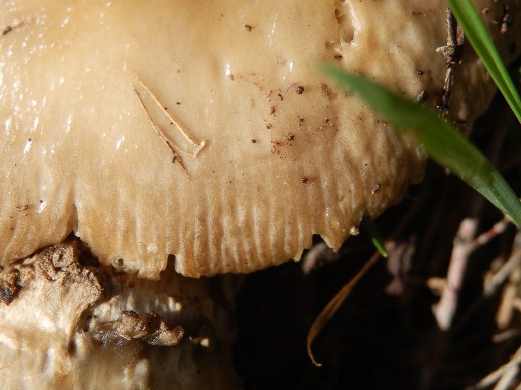 Hut: ca. 10 cm, glatte Oberfläche, grau-braun, dicke Velumsreste bei jungen Exemplaren, die sich alsbald lösen