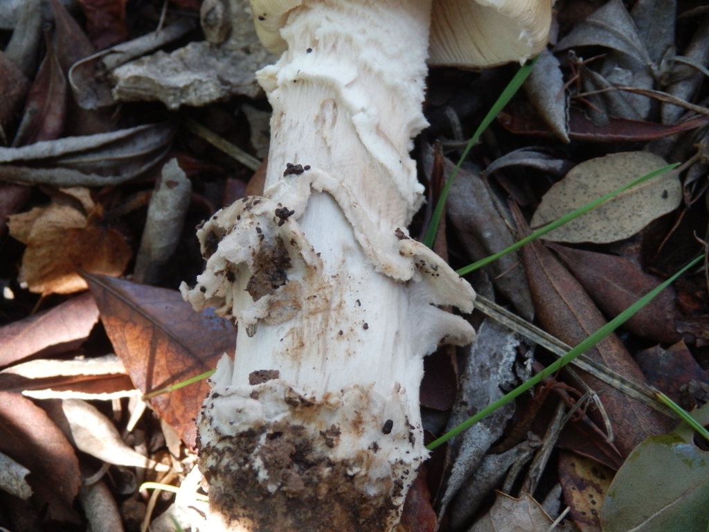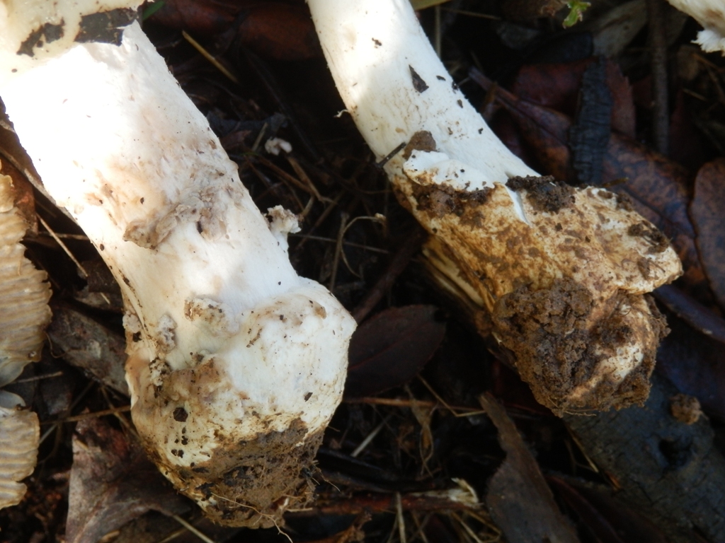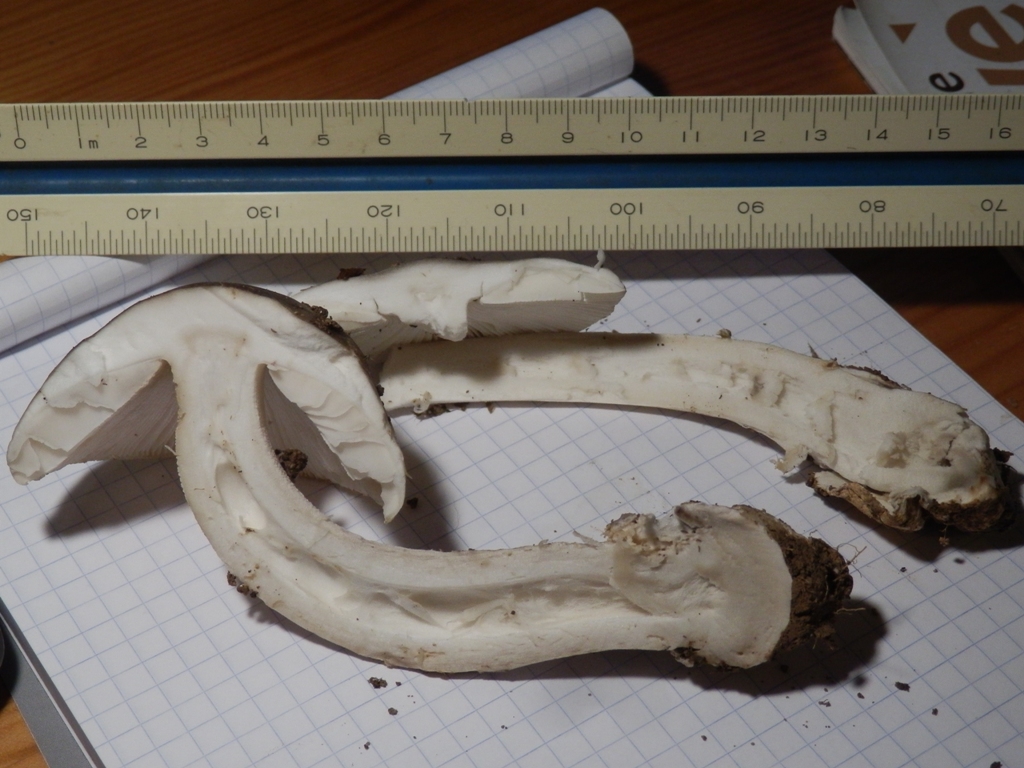 Stiel: ca. 13 cm, weißlich, verdickte Stielbasis z. T. mit Velumsresten