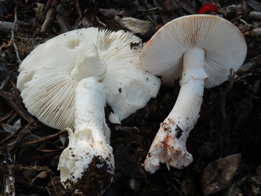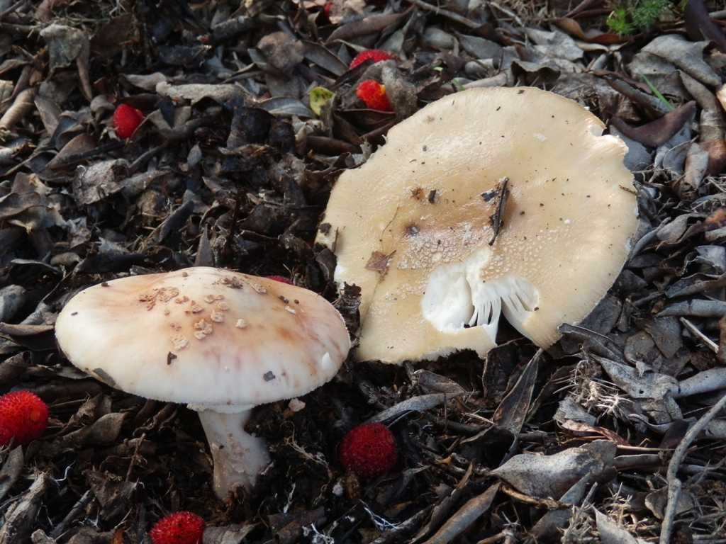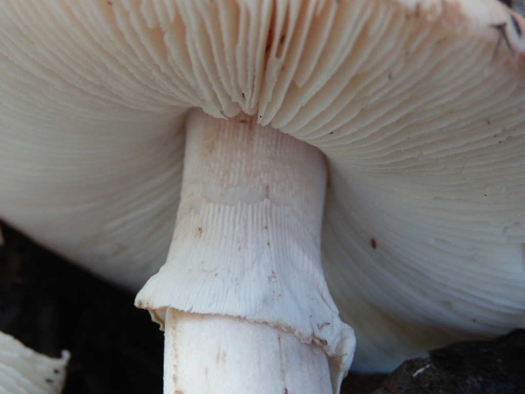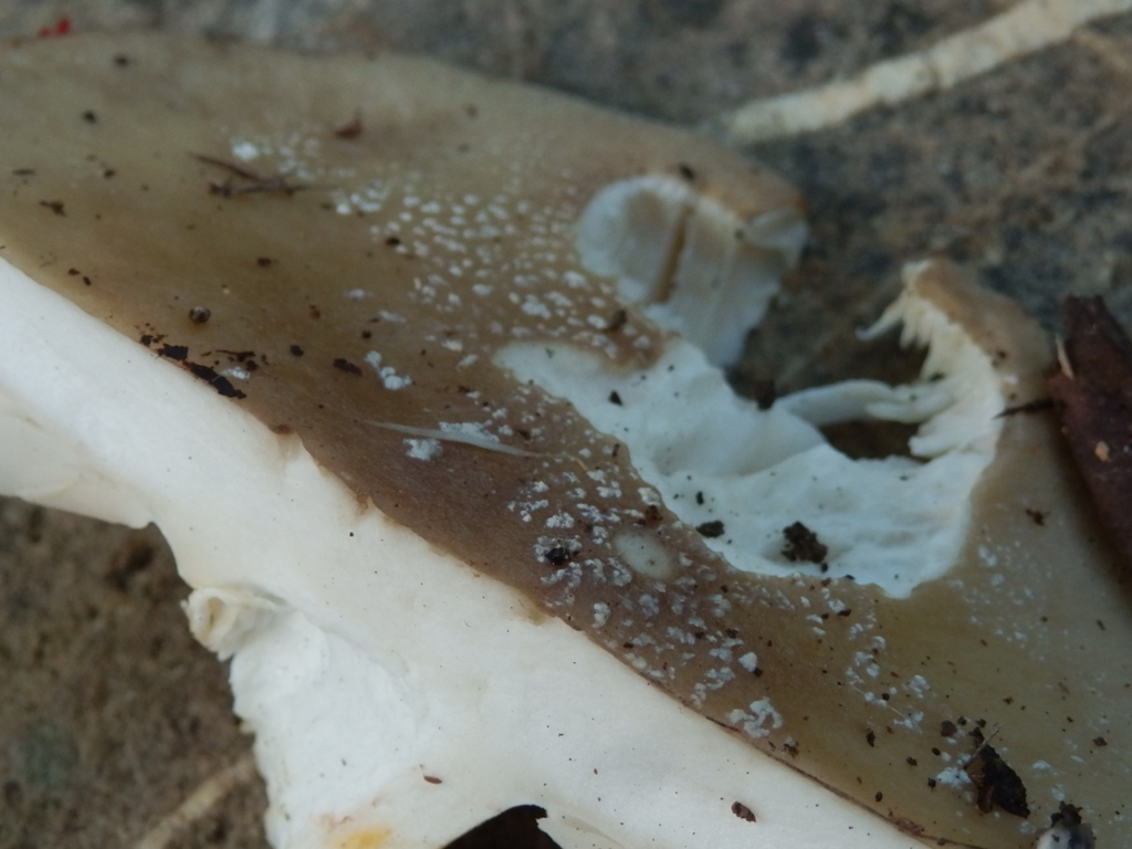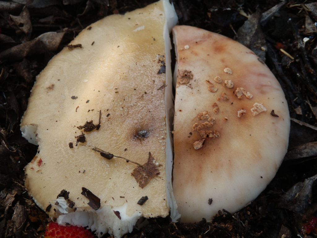 Leider ist beim Perlpilz die Stielbasis in der Erde steckengeblieben, weil sie schon total zerfressen war. Auf den Fotos ist das nicht so gut zu erkennen, aber wenn man beide nebeneinander hält, kann man sie eigentlich genauso wenig verwechseln wie man Kaiserlinge und Fliegenpilze verwechseln kann. Die Tönung des Huts ist jeweils eindeutig. Natürlich gibt es beim Perlpilz noch die anderen Merkmale.