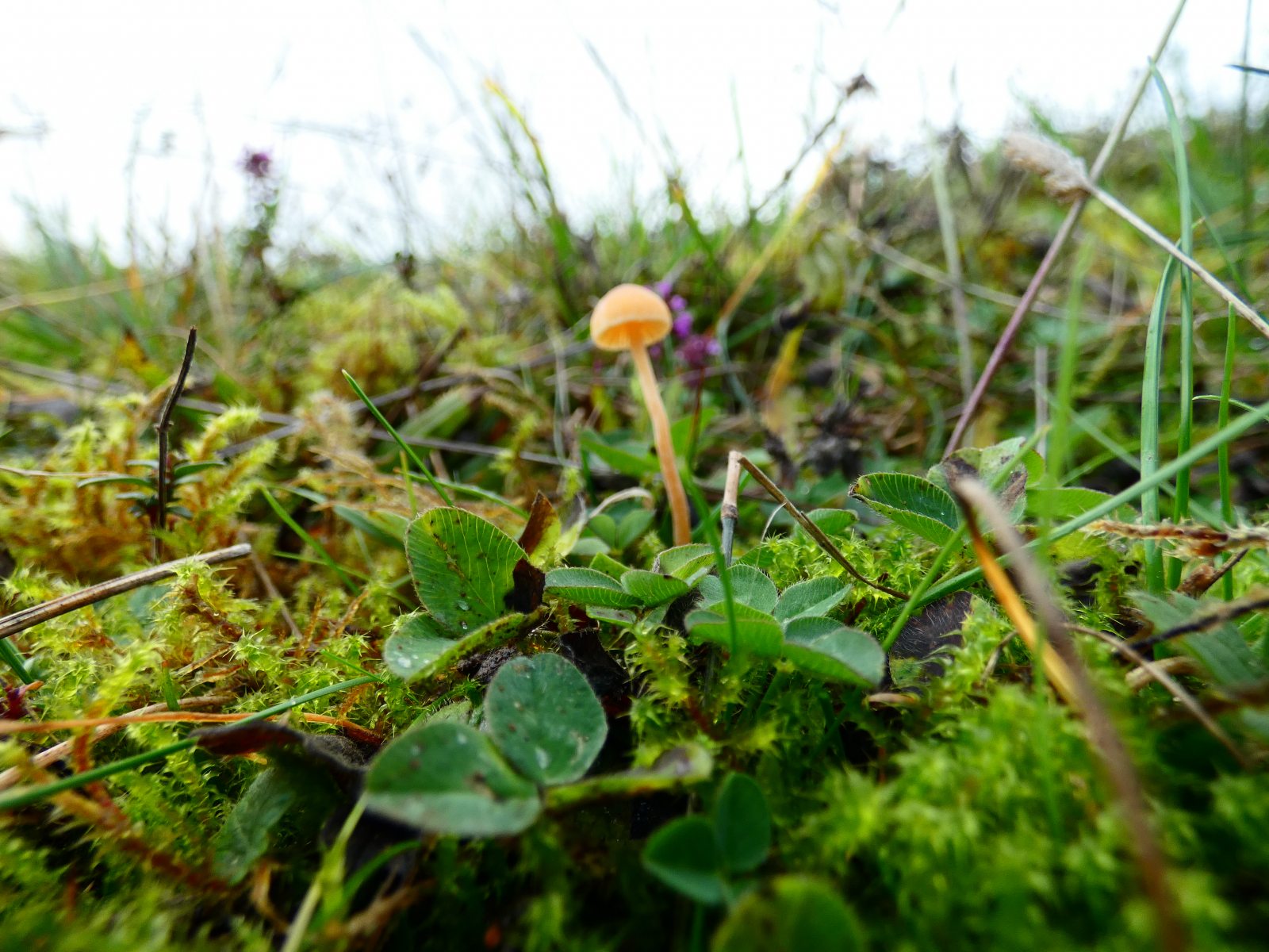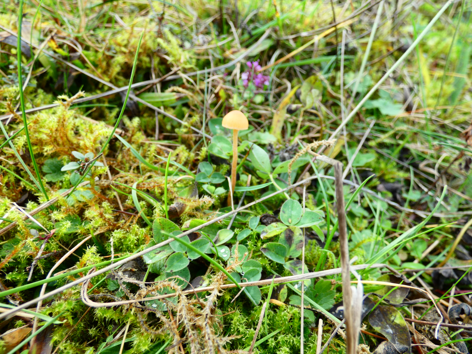 Pilz 2: Klein, orangegelb, niedlich, unscharf...ein Helmling? Norbert: Häubling spec. (Moos-, Rasen-?)