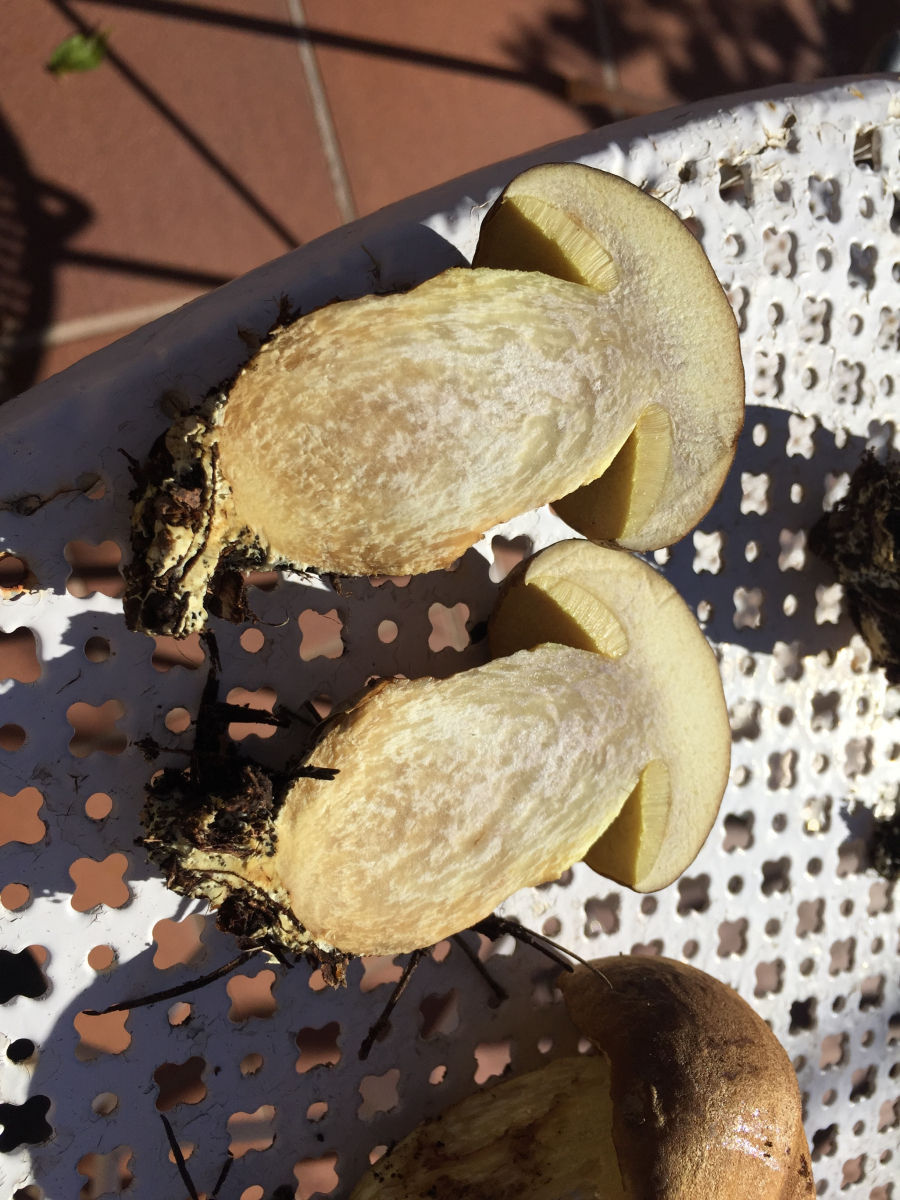 Beim Durchschneiden dürfte es nach kurzer Zeit klar werden, denn die laufen ja rosagrau und zuletzt grauschwarz an, niemals aber blau. Entsprechende Dickröhrlinge (die so ählnich aussehen) würden entweder gar nicht oder blau verfärben.