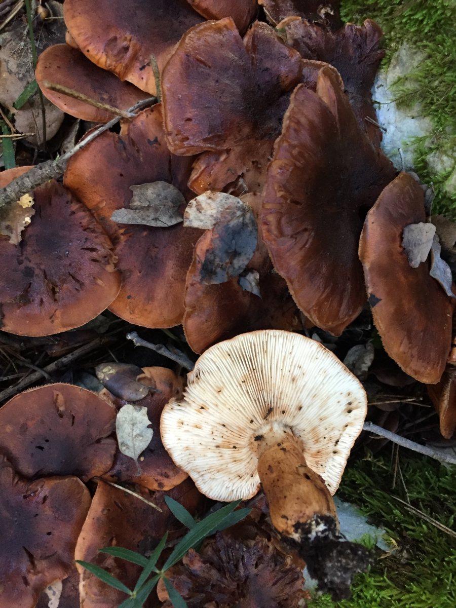 Der "brandige" und der danach ist beides die gleiche Art (mit unterschiedlich alten fruchtkörpern), nämlich Tricholoma batschii.