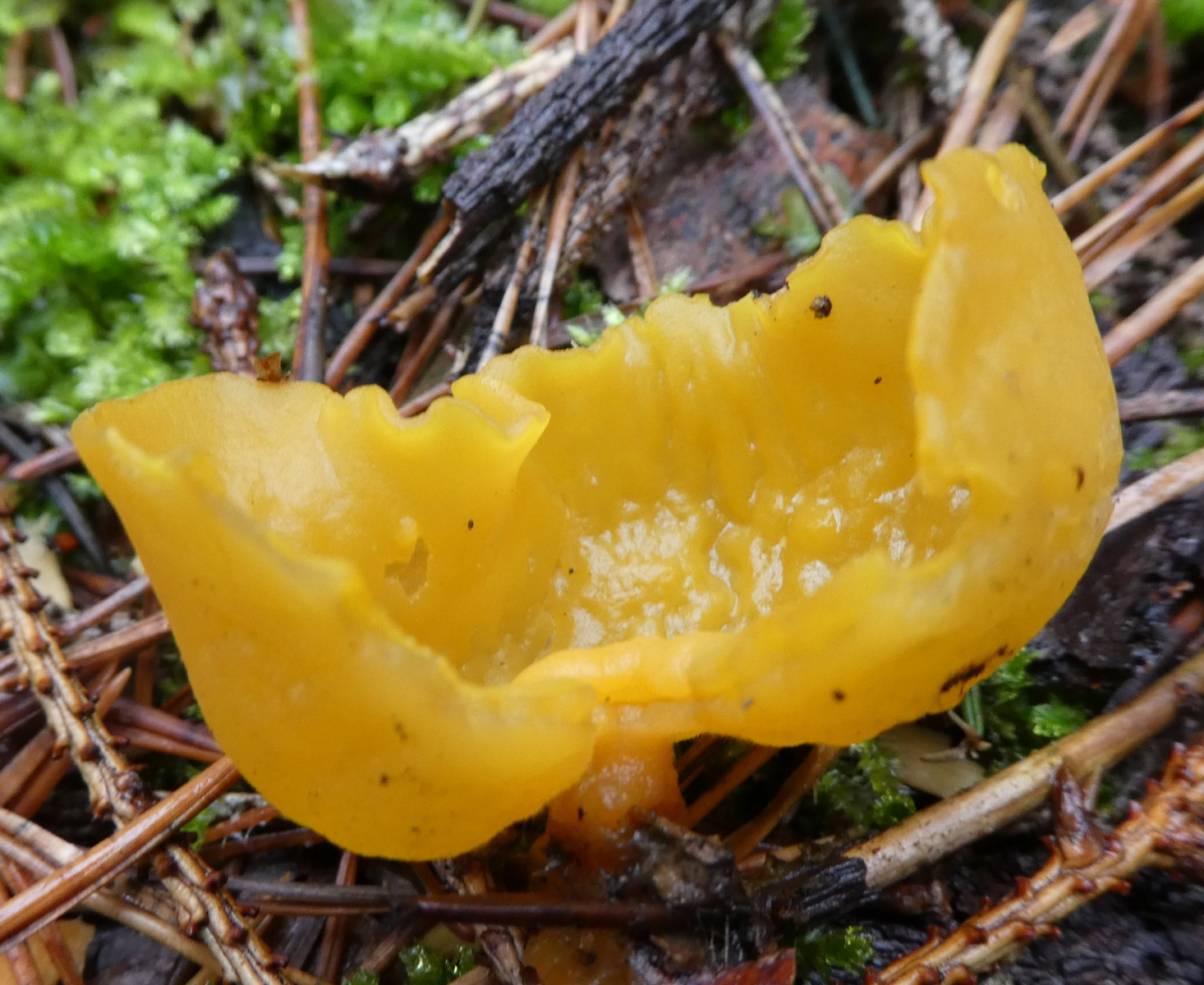 Prächtiger oder auch Orangefarbener Wurzelbecherling (Sowerbyella imperalis)