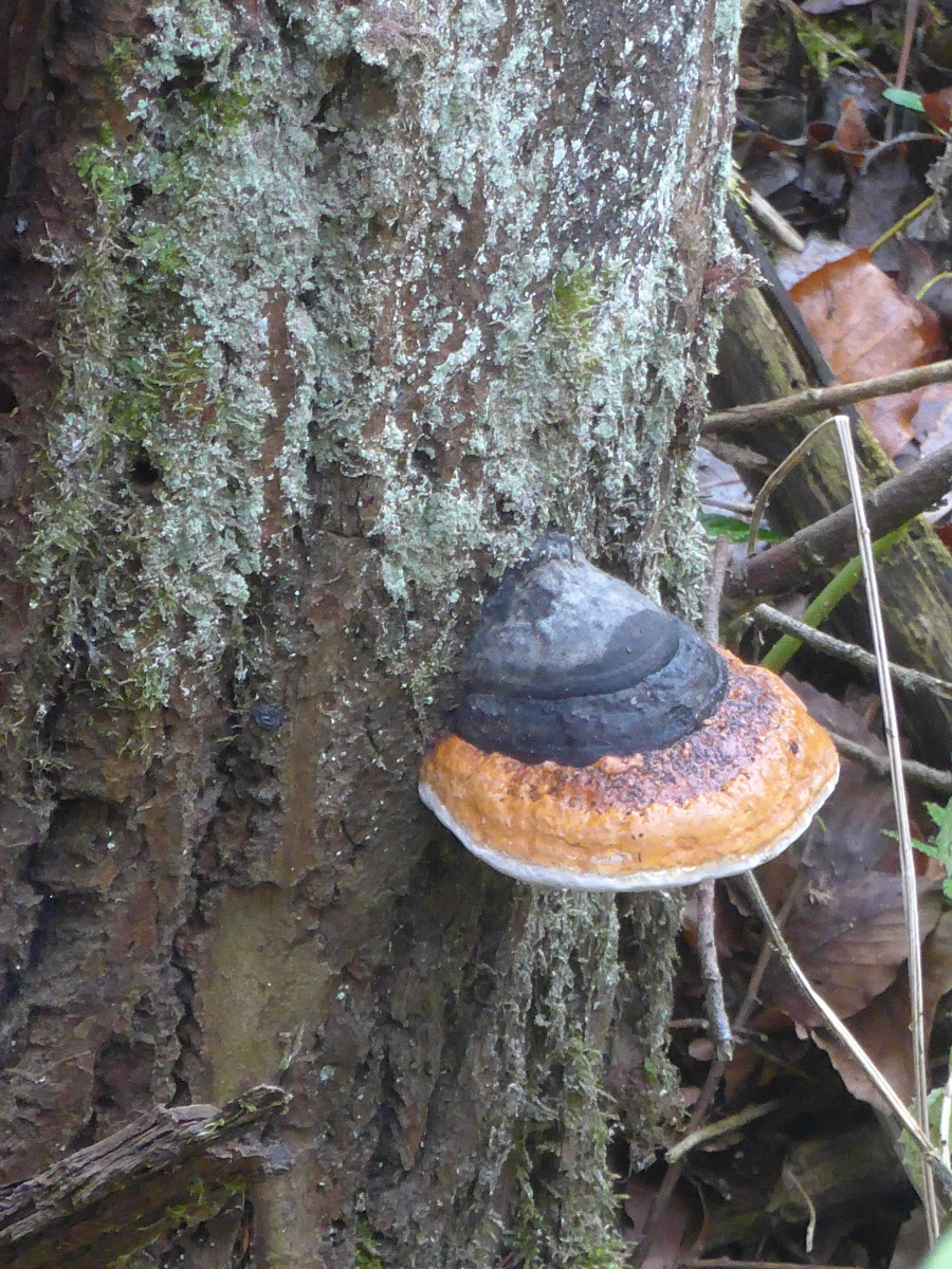 Der schicke Porling nach den Schleimrüblingen schaut aus wie ein Knotiger Schillerporling (Inonotus nodulosus).