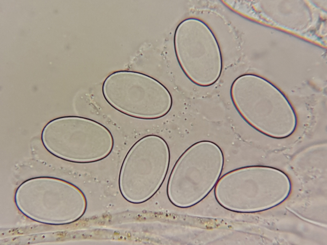 Sporen glatt, 21-23 x 13-15 μm.