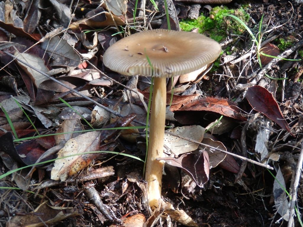 Amanita umbrinolutea scheint zu passen, außer das bei den meisten Bildern und Beschreibungen dieses Pilzes der Hut "gezont" ist, was bei meinem Pilz nicht der Fall ist. Die Hutmitte ist zwar dunkler, aber der Hut wird eher allmählich heller zum Rand hin.