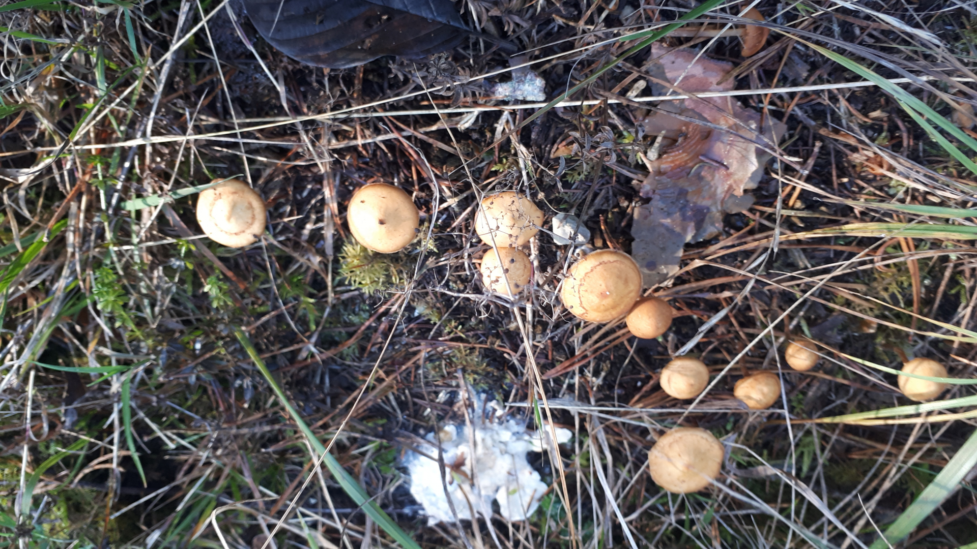 Vom Stil her wie Gifthäubling, silbrig, faserig... lamellenansatz, büschelig wachsend. Kiefernwäldchen... Lg