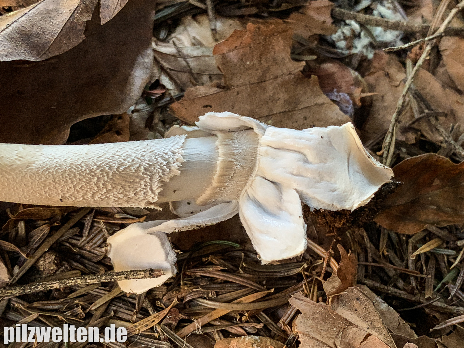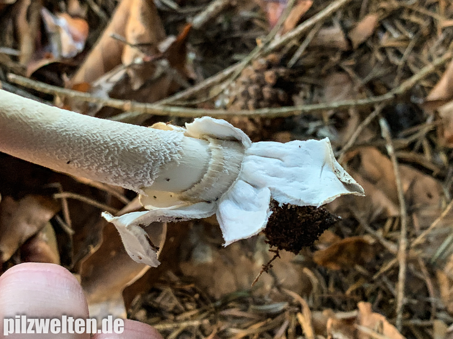 den folgenden Scheidenstreifling konnten wir im Oktober 2018 im Mischwald finden (überwiegend Fichten mit ein paar wenigen Buchen). Bis auf die helle Farbgebung sah das nach einem Standard-Scheidenstreifling aus. Allerdings kennen wir persönlich keinen Scheidenstreifling, der so hell / fast weiß ist. Hat jemand von euch eine Idee, um welche Art es sich im Detail handeln könnte?