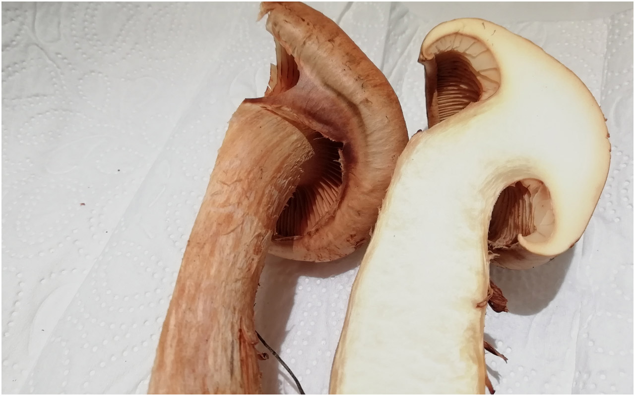 Geruch eher dumpf und etwas muffig, aufgeschnitten dann schon weniger unangenehm und eher pilzig.