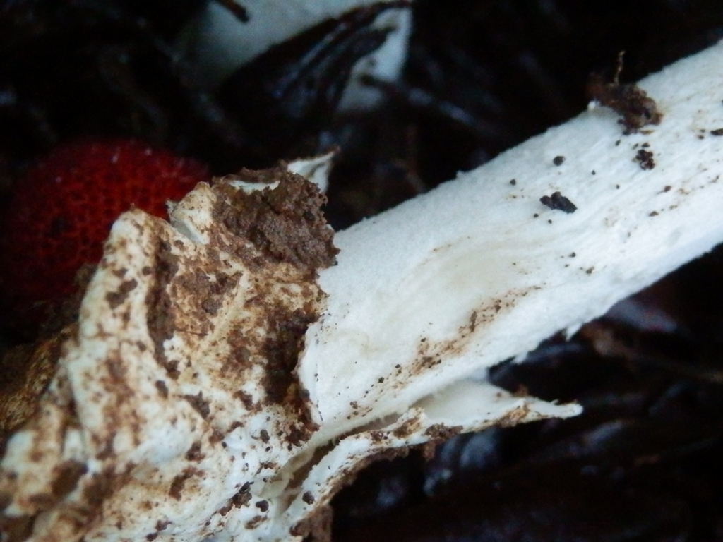 Der Stiel ähnelt dem Amanita der hier als A. submembranacea bezeichnet wird. Allerdings hat der Hut bei meinem Pilz keinen Höcker in der Mitte.