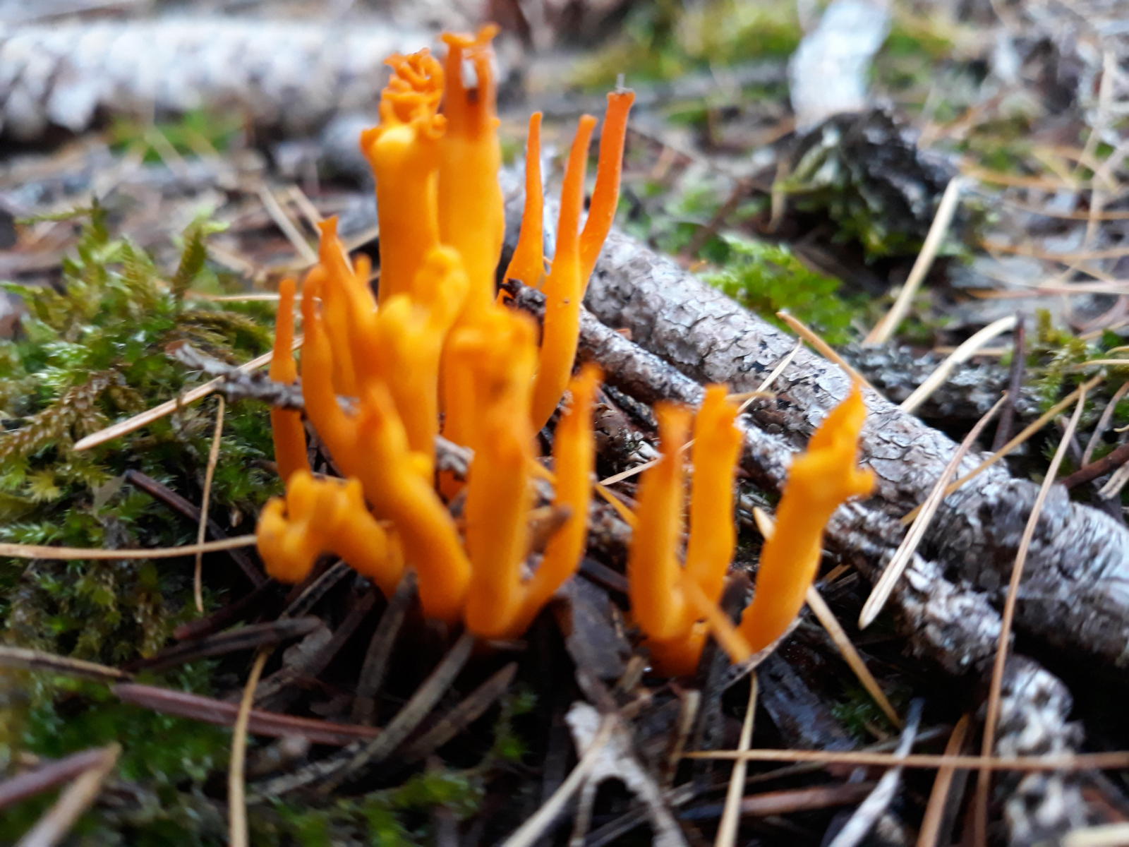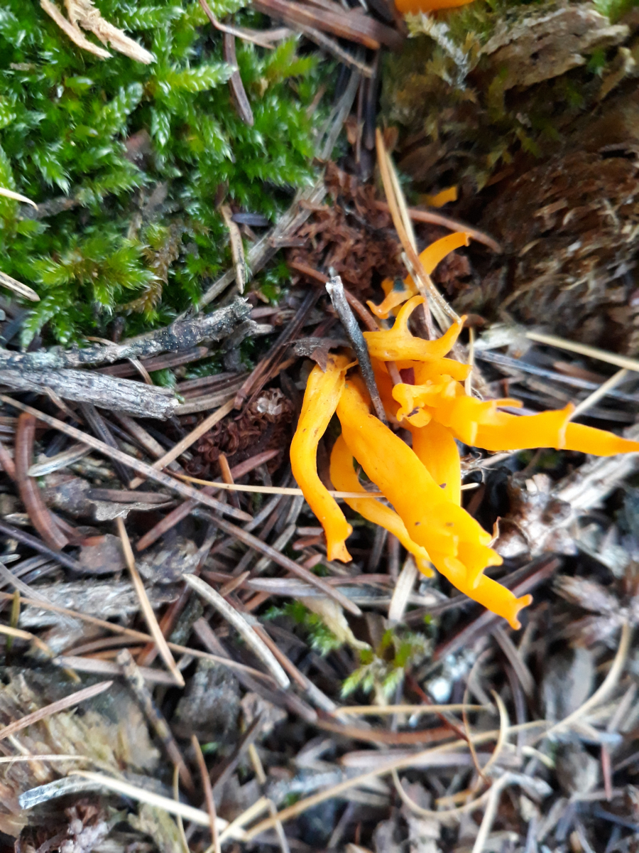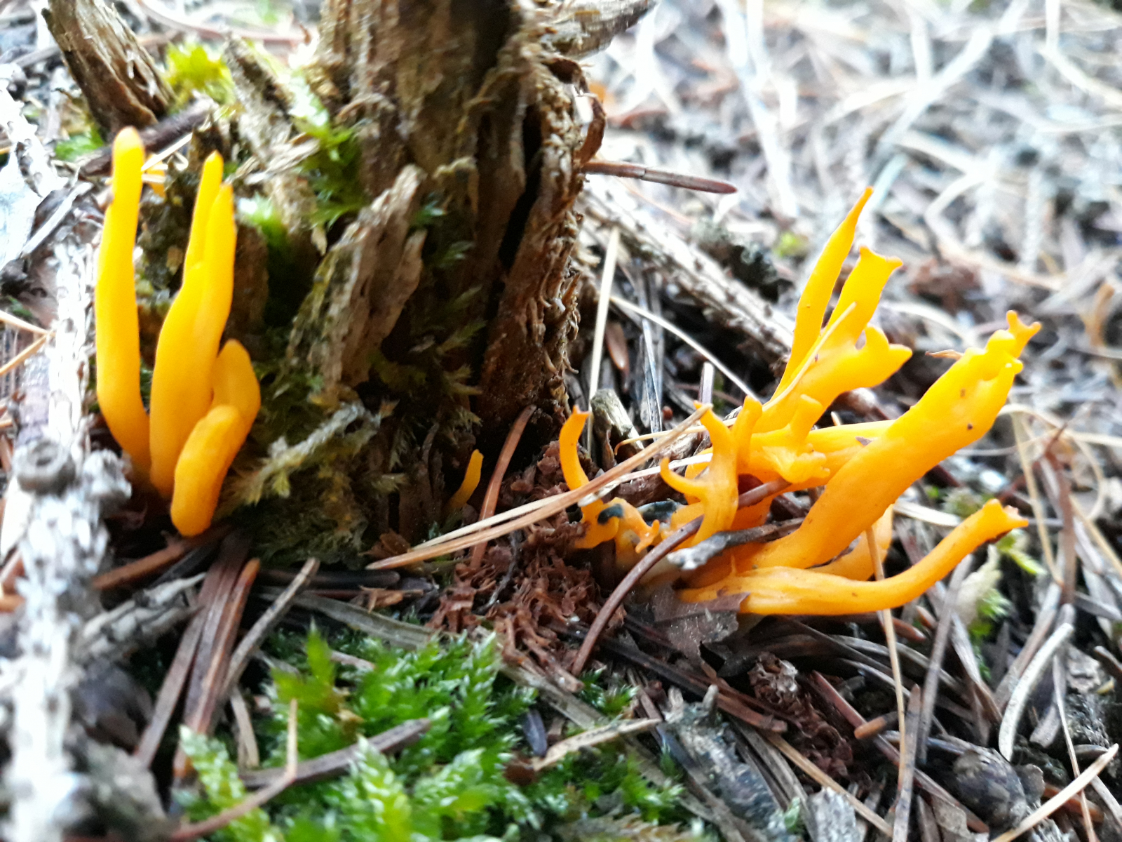 Den einen Pilz fand ich mit der Nase, der andere sprang mir vor die Augen. Es geht mir eigentlich nicht gross um die Bestimmung (ob klebriger Hörnling - calocera viscosa oder gelbe Wiesenkoralle - ramariopsis citrina sei mal dahingestellt), sondern stellte die Bilder rein zur visuellen Unterhaltung rein. Für mich beides Erstfunde, beide sehr speziell auf ihre Art.
