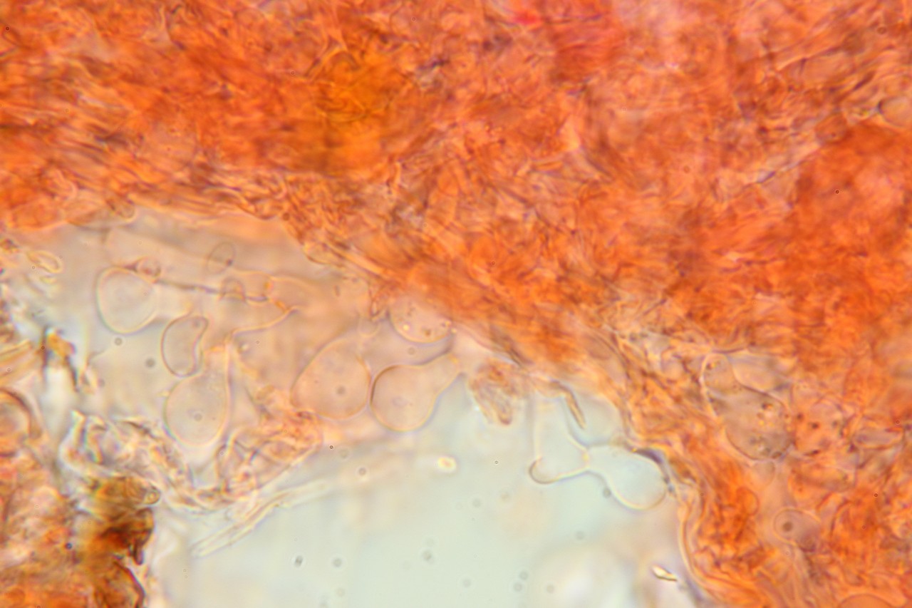 Zellen des Hymeniums waren nur sehr schwer zu finden - auf Anhieb hatte ich keine Basidien gefunden
