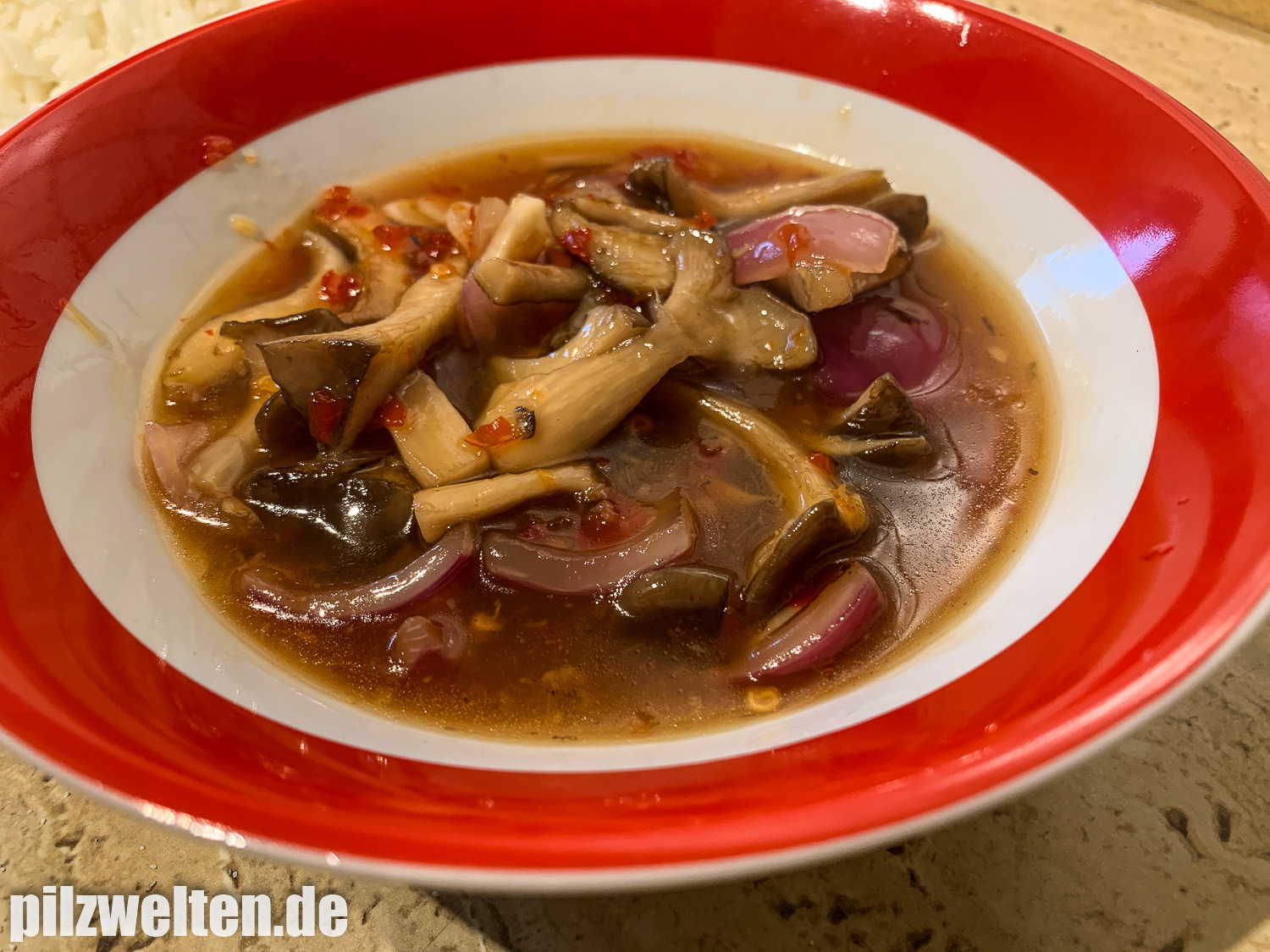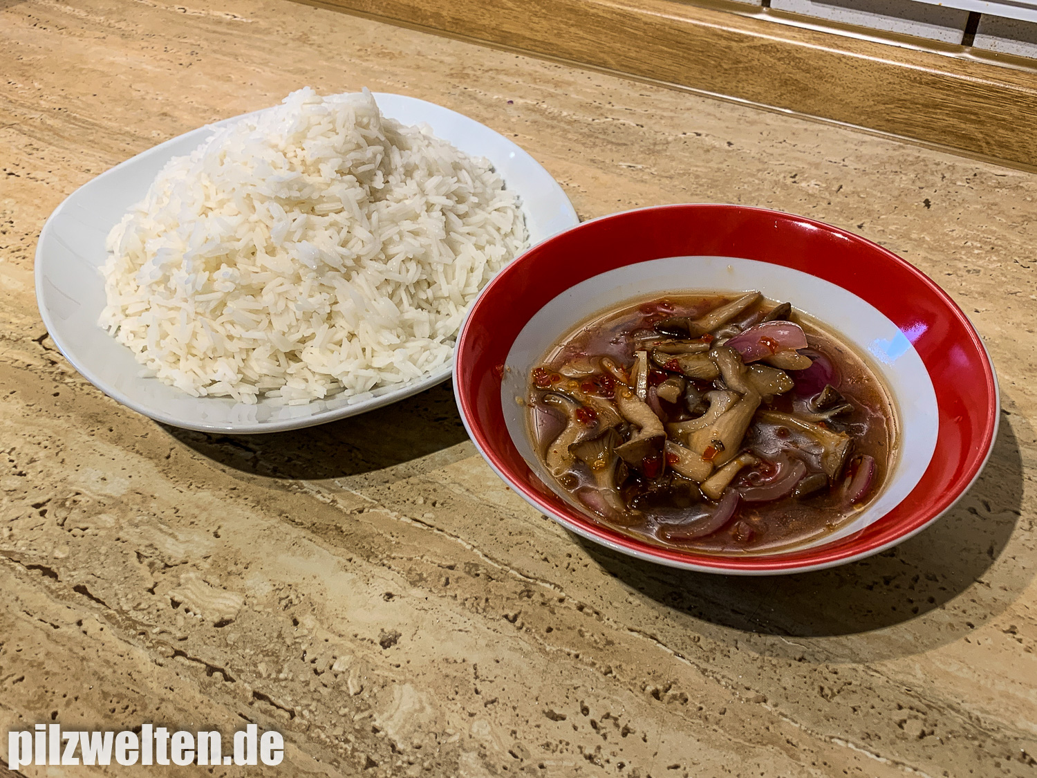 12. Zum Essen gab es dann ganz spontan Austernseitlinge Süß-Sauer mit Reis (Rezept & Zubereitung wären bei Interesse im oben verlinkten im Video-Fundbericht ab Minute 09:15 zu sehen)