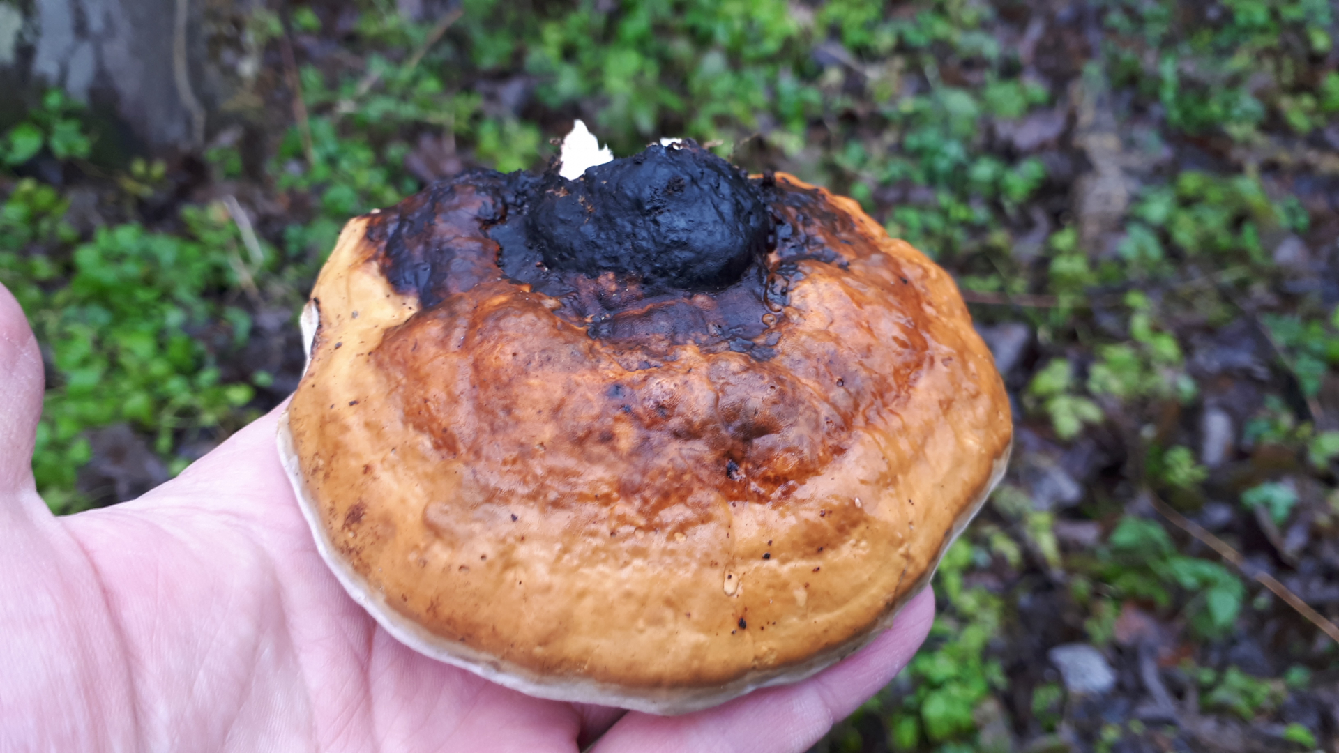 Ich habe hier einen leicht nach Fenchel riechenden Pilz. Ich habe schon einmal einen Fenchelporling gefunden, der war aber intensiver im Geruch. Poren ganz hell zitronenfarbig bis weiß. Das passt leider nicht zum Fenchelporling! Vielleicht Kupferroter Lackporling?? Das Schnittbild zeigt gelbliche Poren,das Fleisch ist weiß.