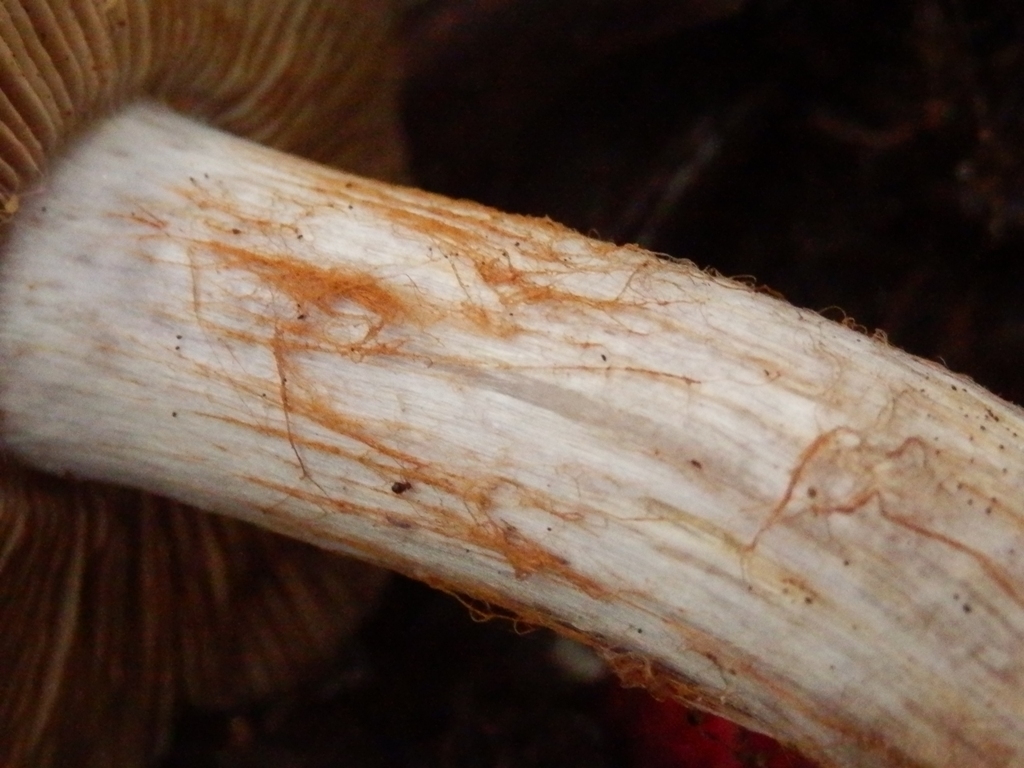 Stiel: ca. 8 cm, weislich mit violetten und bräunlichen Fasern