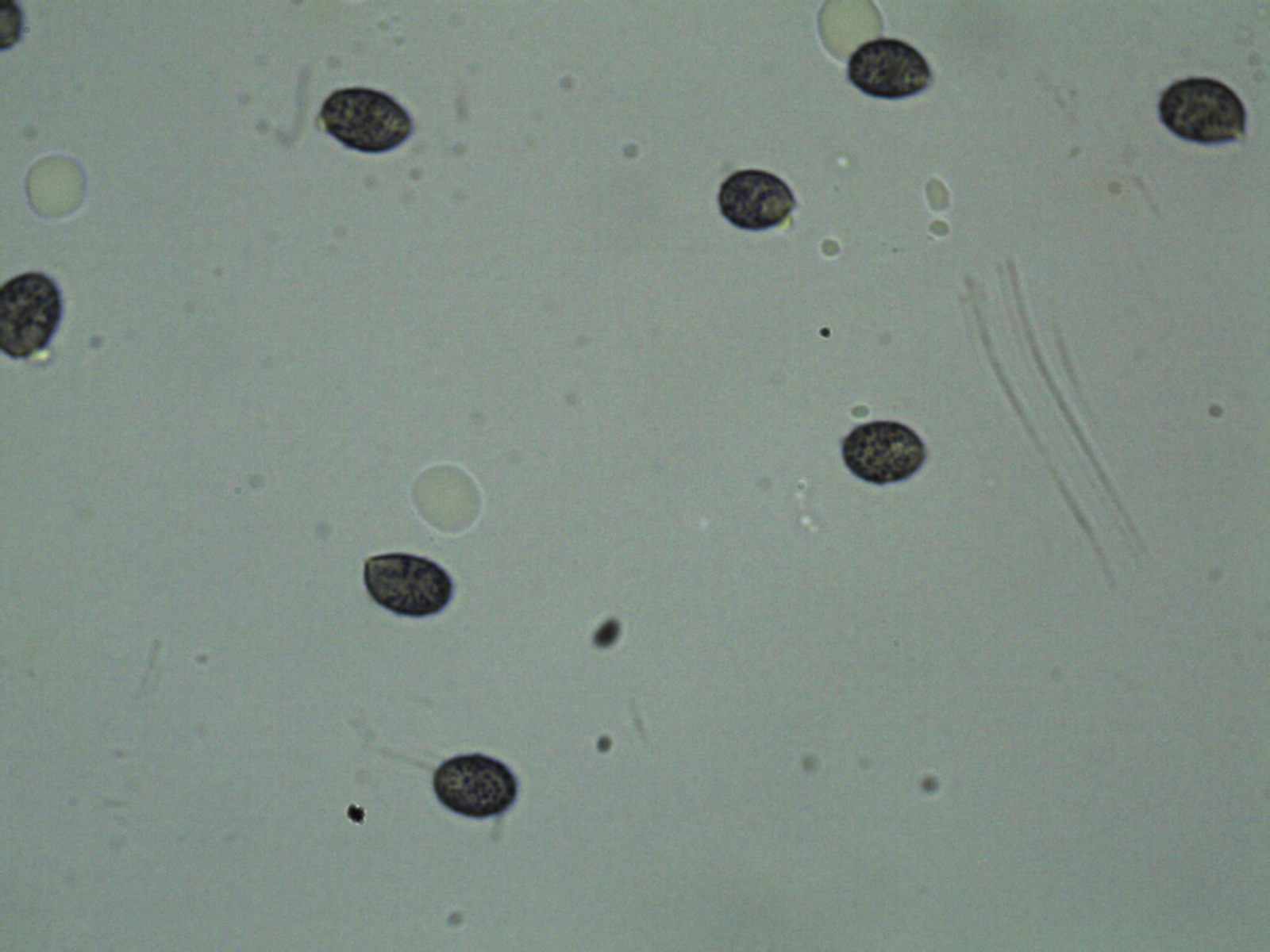 Sporenabwurf in Melzer: 8.5 × 6.1 µm ; Q = 1.4; (7.8) 8 - 9 (9.5) × (5.4) 5.7 - 6.6 (6.9) µm; Q = (1.3) 1.33 - 1.5 (1.6) ; N = 30