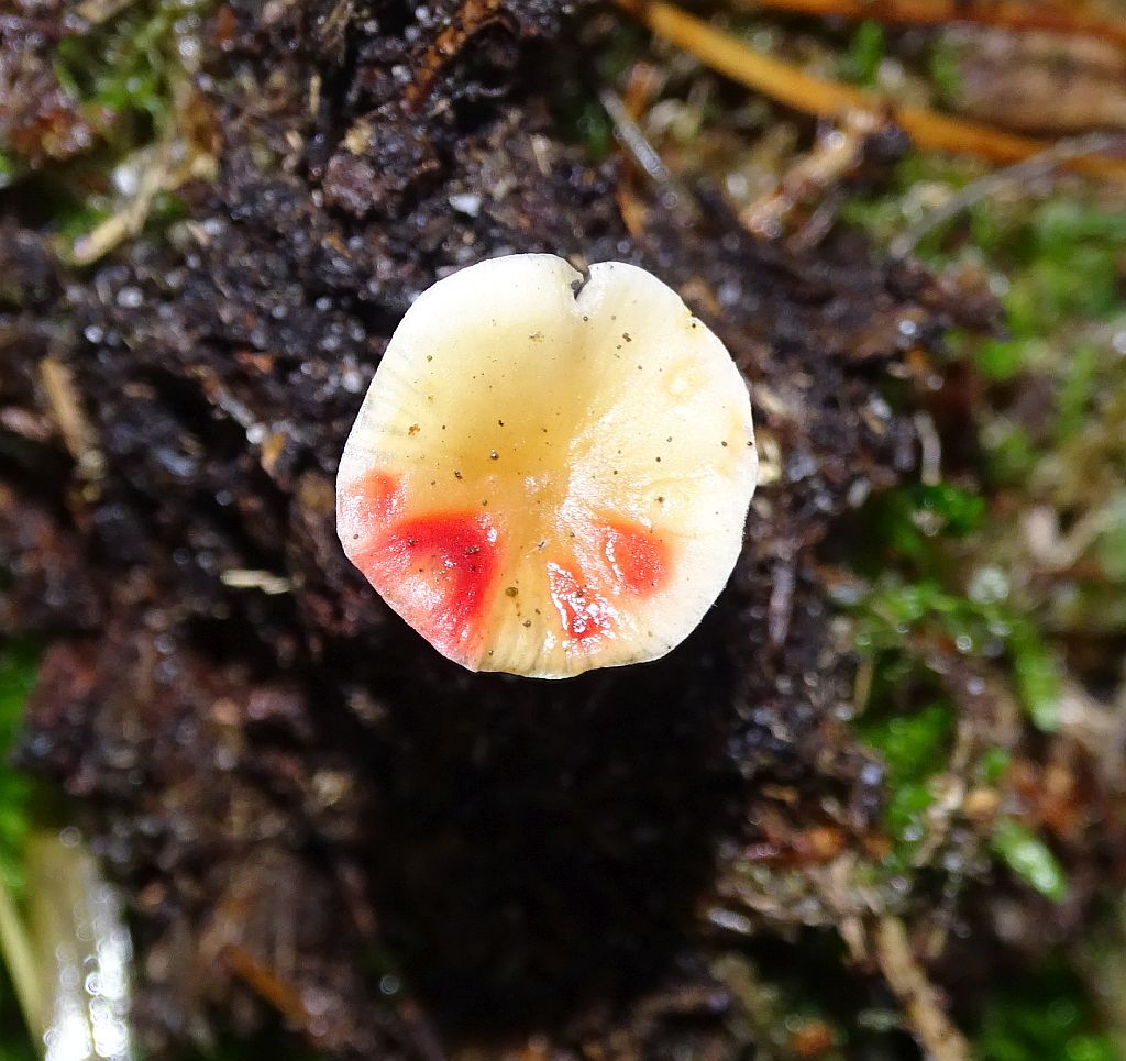 Lamellen: erreichen den Stiel nicht (also frei), weit, normal breit; weiß, z.T. in Hutnähe rot.
