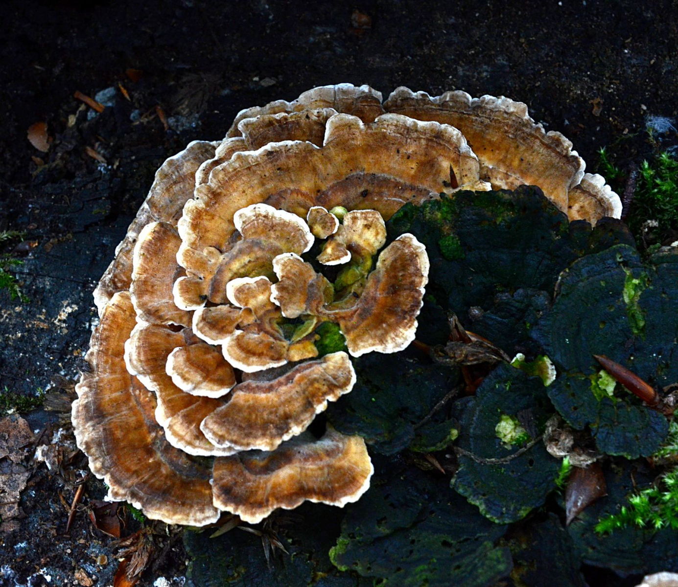 Gefunden auf der Unterseite eines Holzstücks, das auf einem Erlenstamm lag