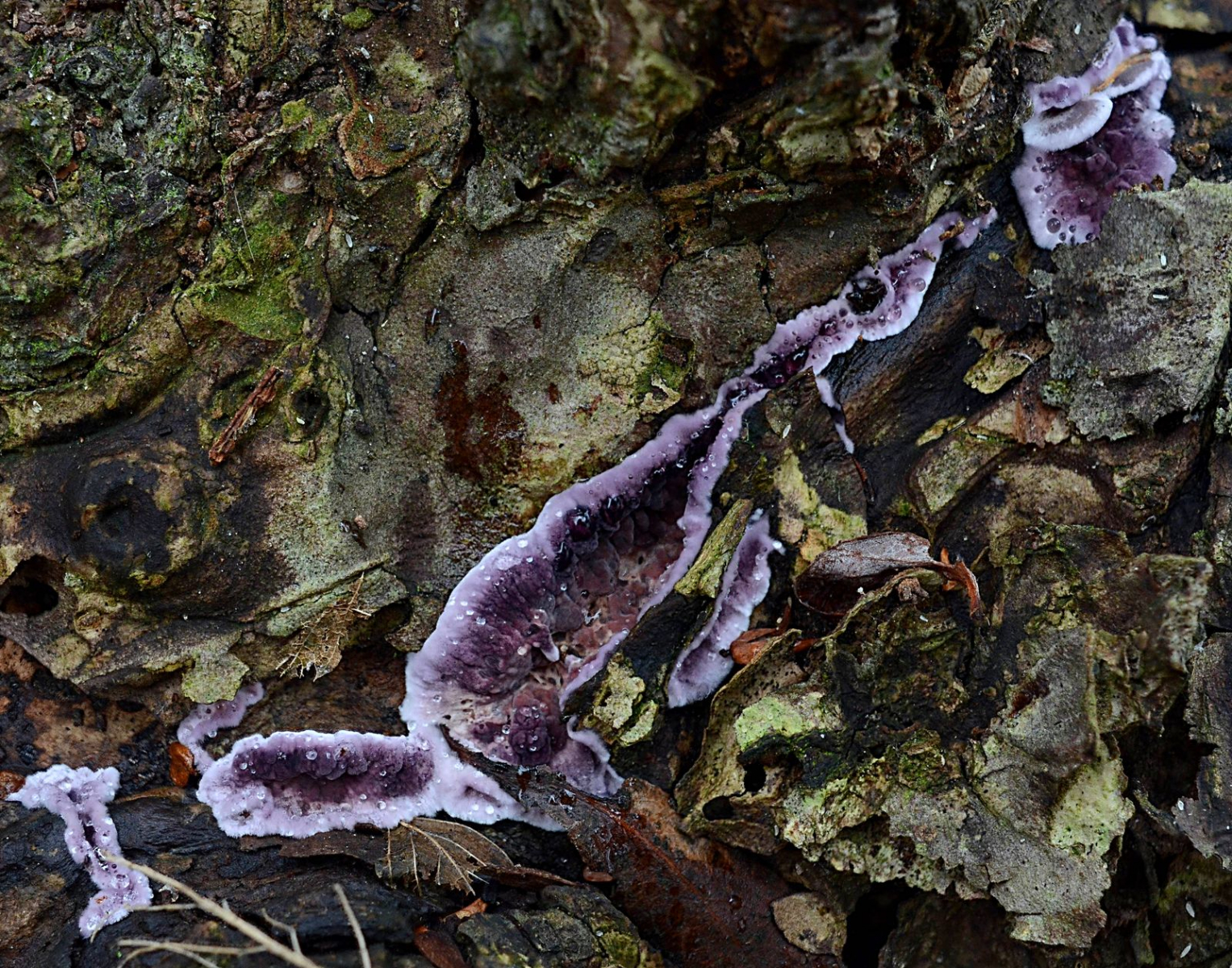 27 Auch ihn hier sehe ich nach langer Zeit mal wieder. Violetter Knorpelschichtpilz, Chondrostereum pupureum