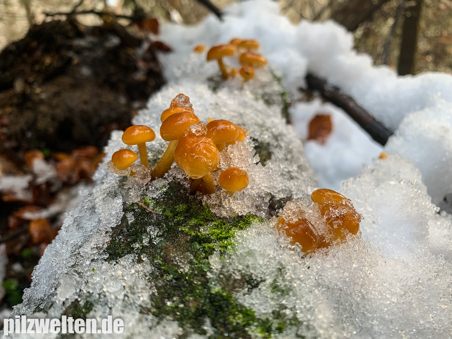 Letzte Woche gab es bei uns einen richtig heftigen Wintereinbruch. Aus etwas Regen wurden fast 24 Stunden Dauerschneefall gefolgt von -8 Grad. Nachdem es zum Wochenende hin nun aber doch wieder wärmer wurde, wollten wir uns nach dem ersten richtig harten Frost unsere Samtfußrüblings-Stellen einmal genauer anschauen und es hat sich gelohnt. Unsere Tour gibt es bei Interessse auch wieder als Video.