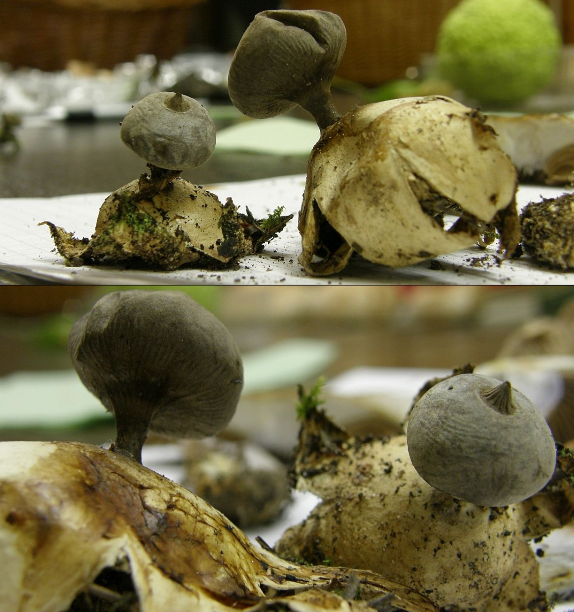 Endoperidie gestielt; 0,8 bis 2,6 cm breit; grau bis graubraun; am Grunde oft längsgefurcht; um die Stielbasis gelegentlich mit einem kragenartigem Ring; sehr jung ist häufig ein Stiel kaum oder nicht erkennbar;
