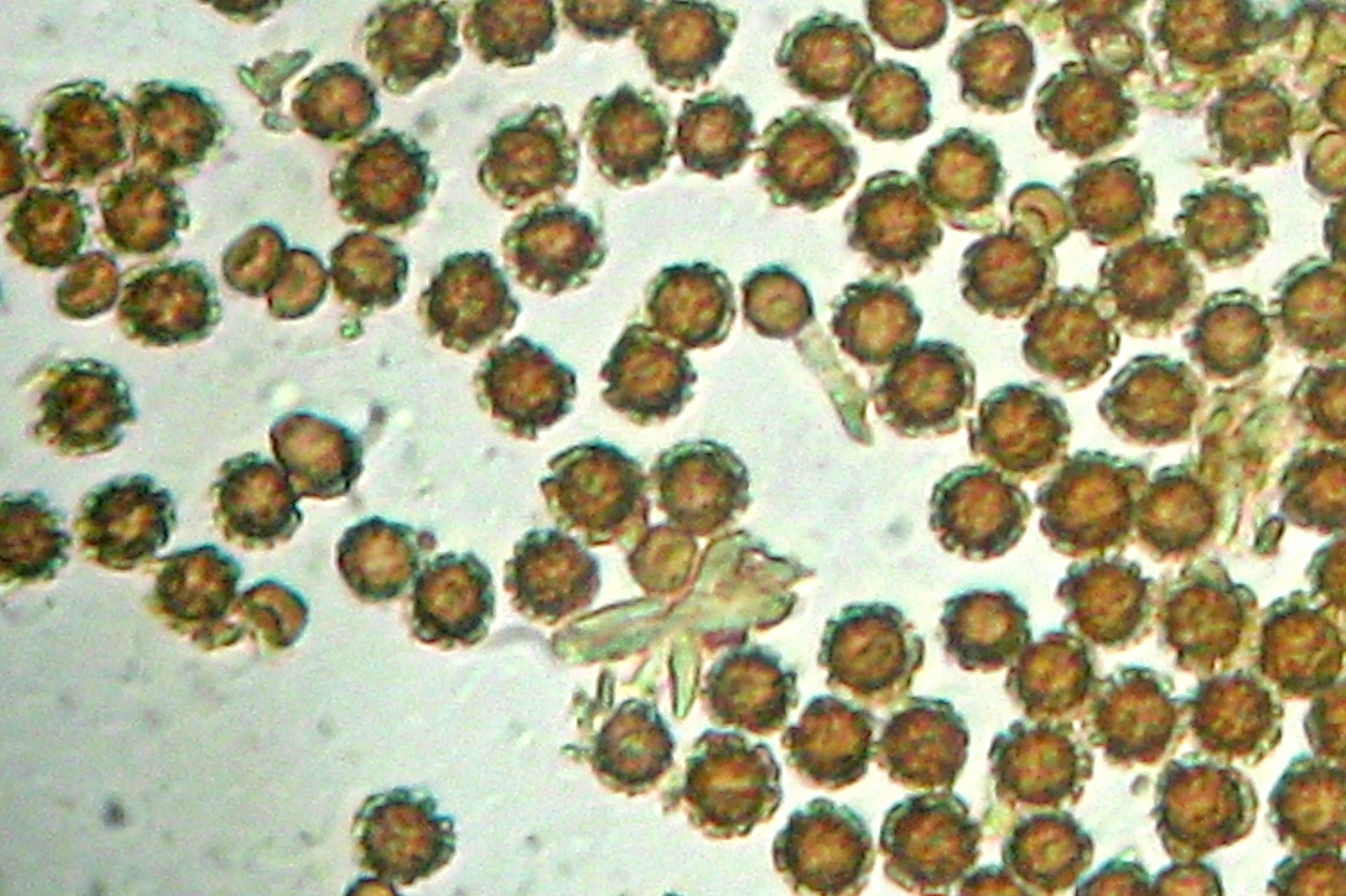 Sporenpulver: schwarzbraun, Sporen kugelig, mit kurzgradigen Warzen, 4 bis 5 µm