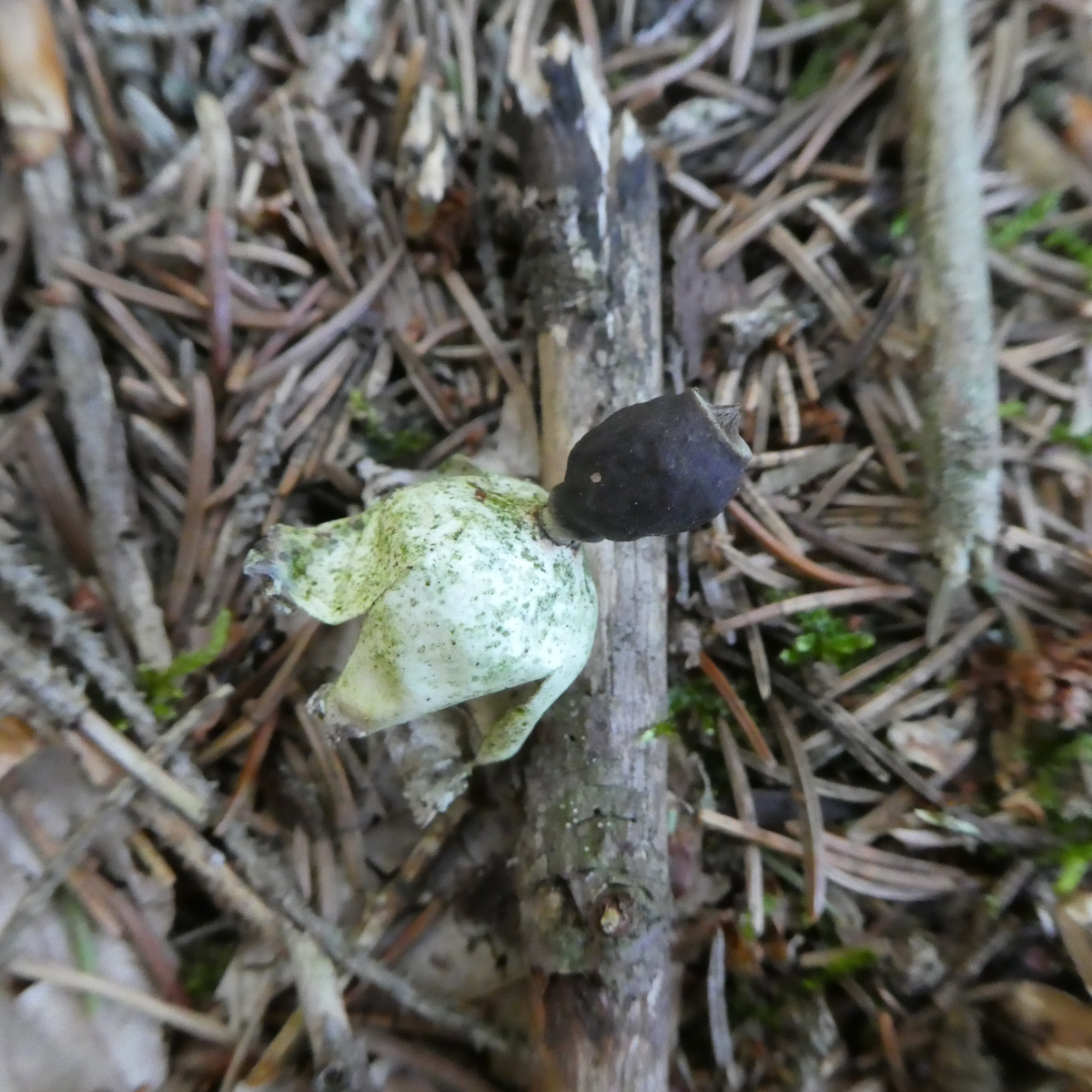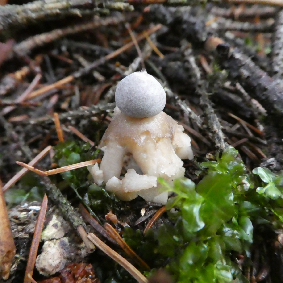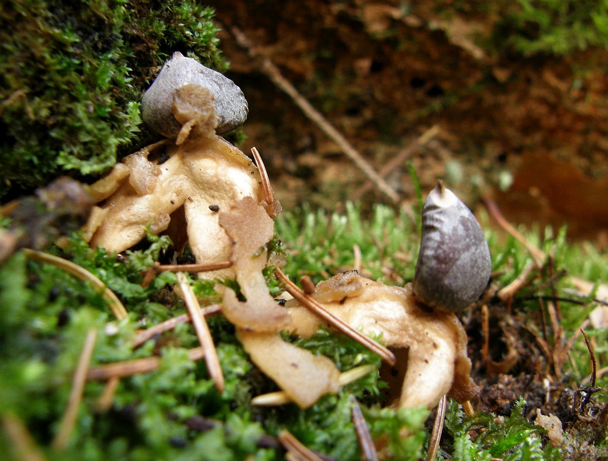 Endoperidie kurz gestielt, kugelig; 0,6 - 1,4 cm breit; hell-beige-grau (jung) bis dunkelgrau-bräunlich/schwärzlich (im Alter); mit stumpfen Warzen;