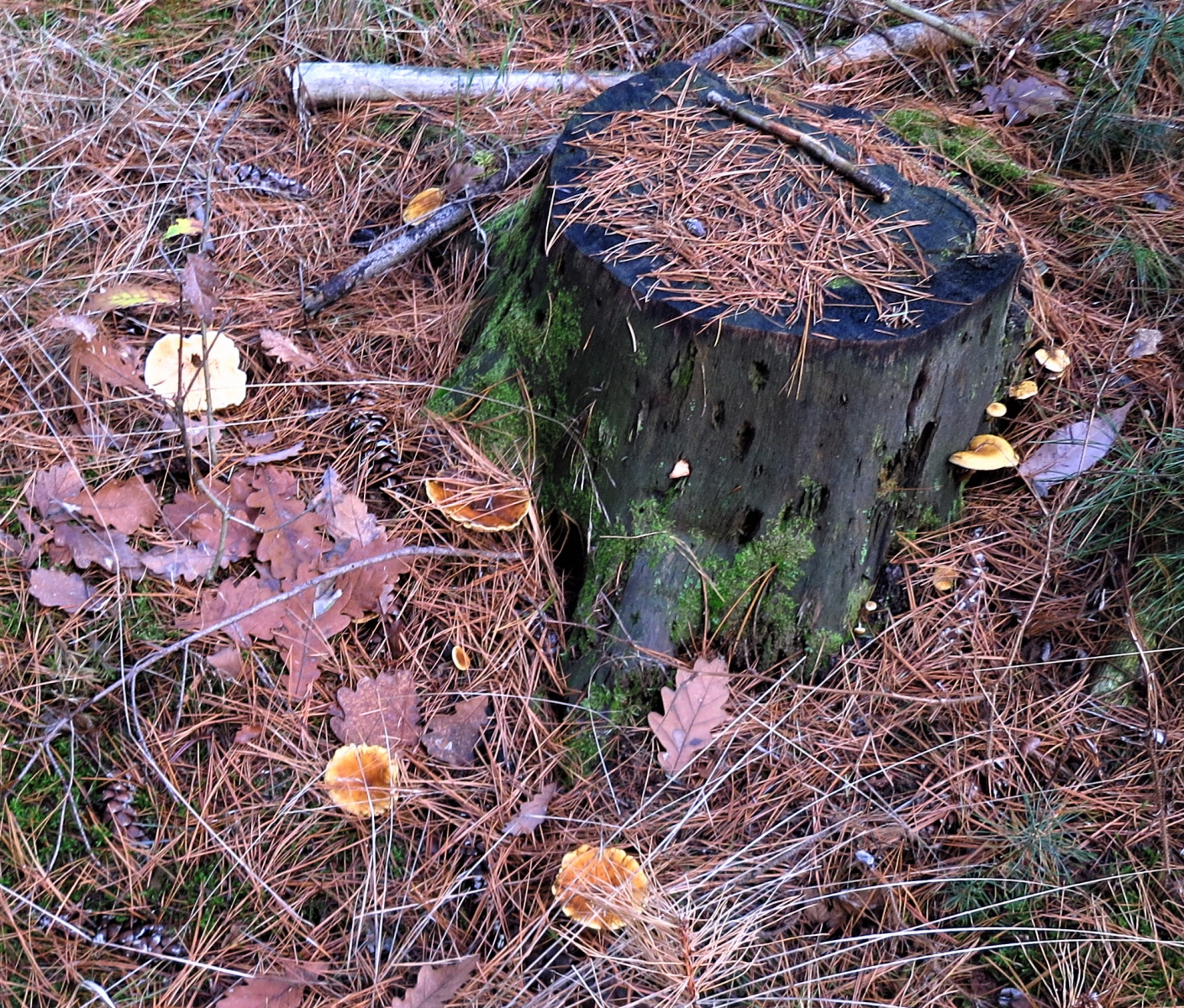 Sie waren sowohl an Stubben als auch im Boden zu finden. Allerdings ist in diesem Waldstück der Boden von Totholzresten nur so überseht. Ich denke es handelt sich um einen Folgezersetzer.