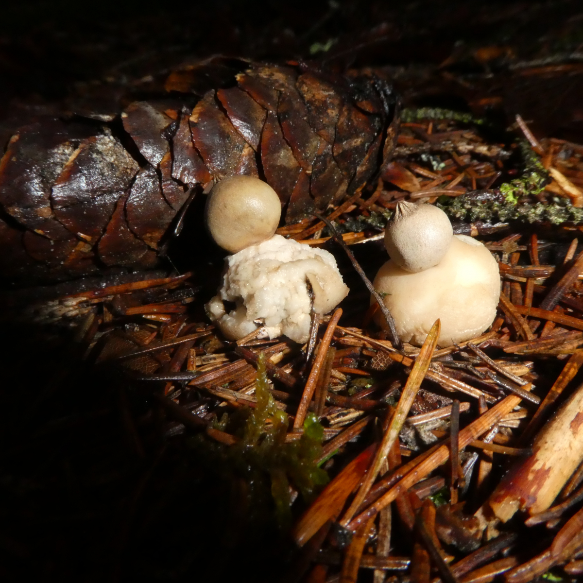 bei diesen Erdsternen dachte ich bisher, dass dies ebenfalls die Kleinen Nesterdsterne sind, aber gestern erkannte Ulla, dass dies nicht sein kann. (hier nachzulesen) Natürlich bin ich da heute noch einmal hin und habe die zwei Exemplare geholt - da stehen noch mehr. Also wenn dies wirklich G. elegans ist, dann wäre dies ja ein Ding - die gelten, so habe ich mehrfach gelesen, in Bayern seit Jahren als verschollen! (Wobei es allerdings eine Eintragung aus 2006 in Pilze Deutschland gibt?)