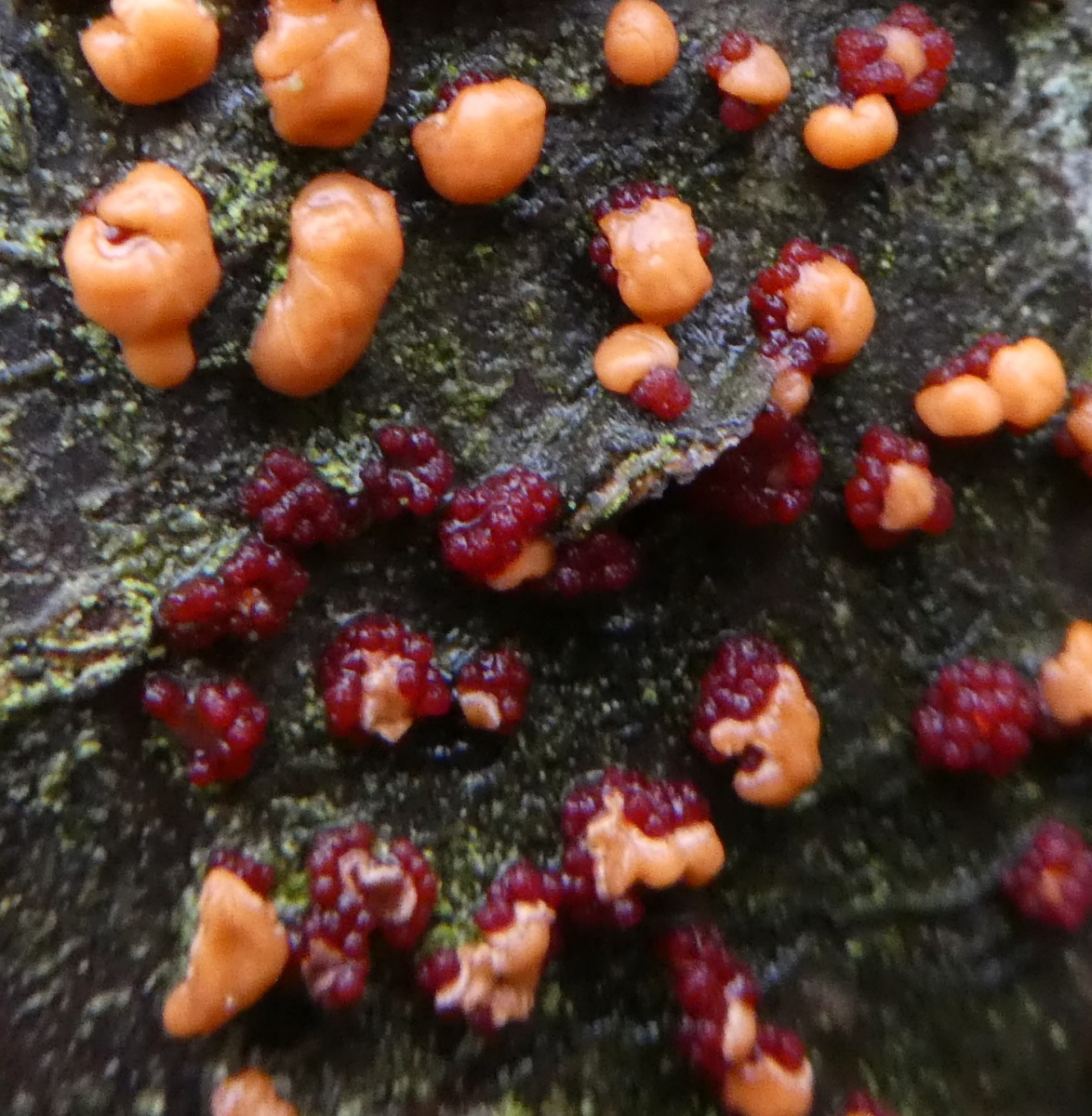 gefunden habe ich diese Pilze an einem Holzstapel, ich denke Rotbuche. Mit meinen Bestimmungsversuchen suche und suche ich und finde nichts, auch nicht annähernd. Bitte, was habe ich da heute gesehen?