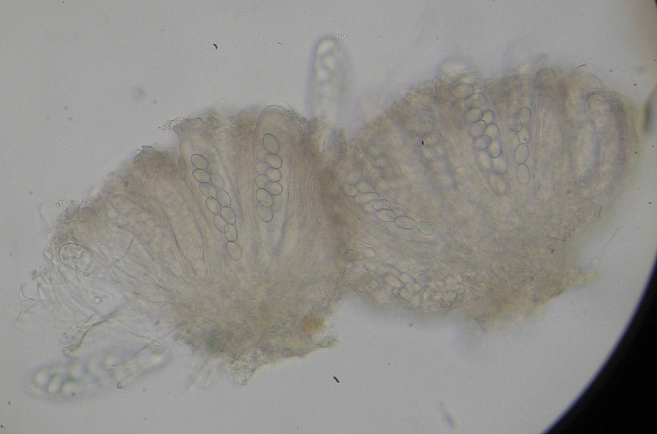Das Erste was man sah, waren kleine weißliche Fruchtkörper mit hervortretenden Asci.